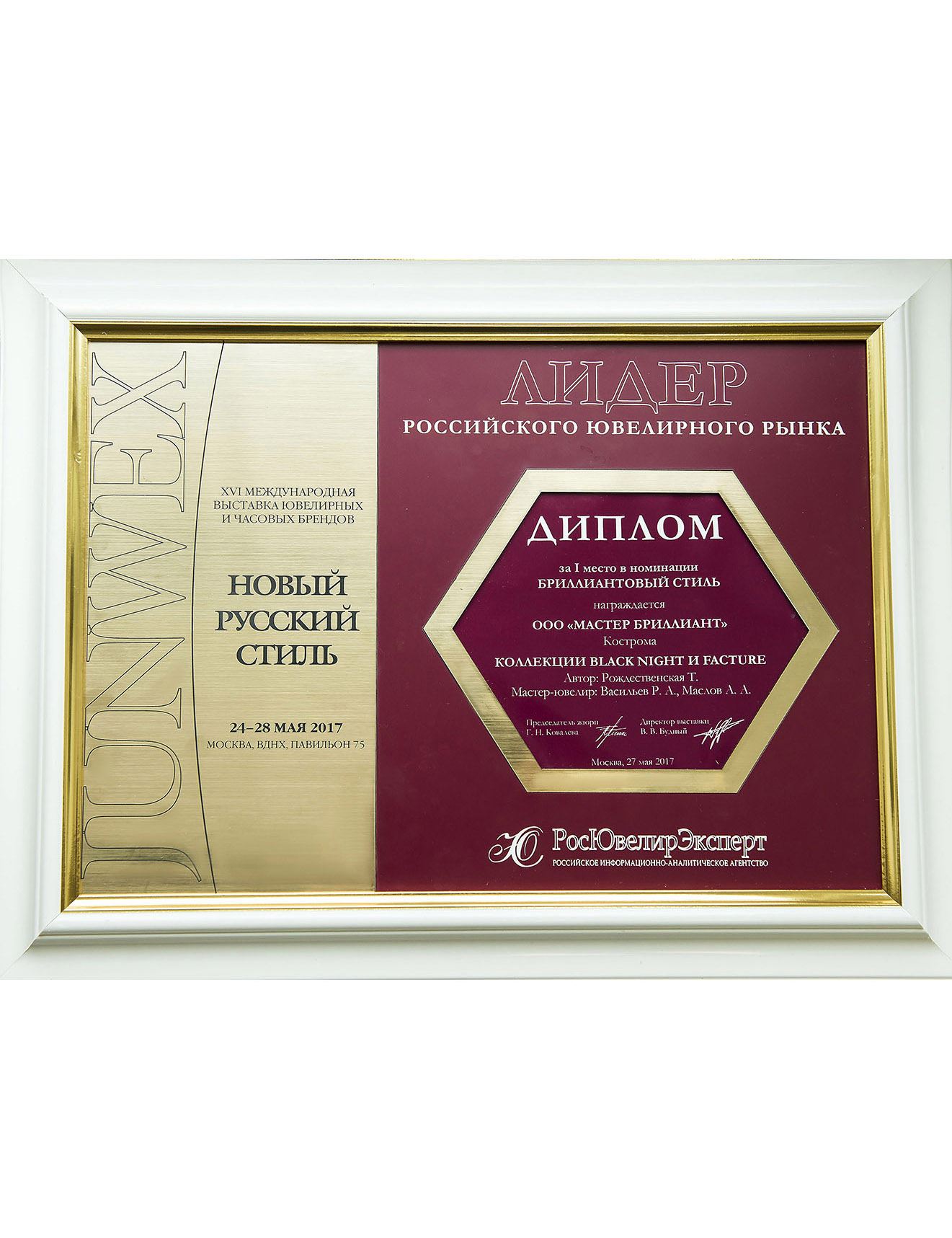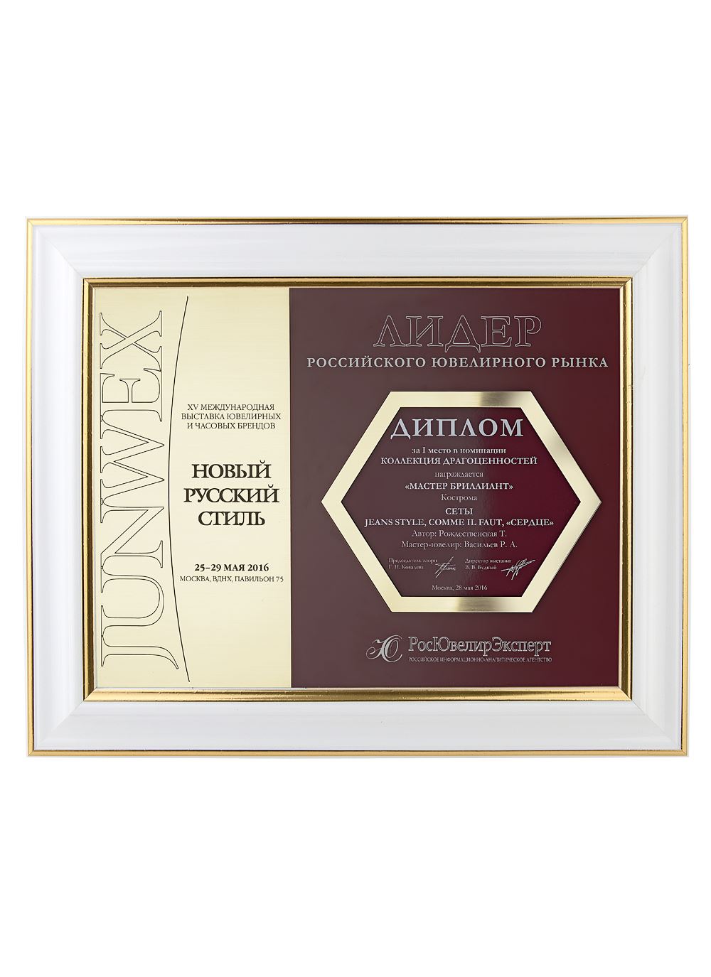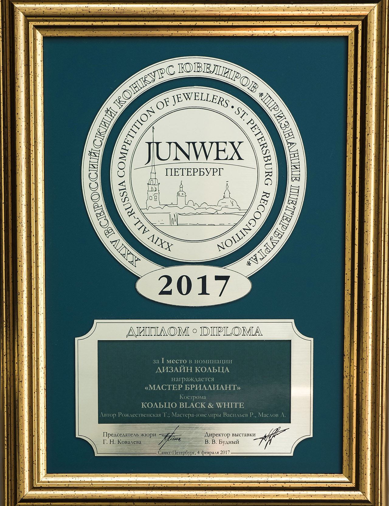 Диплом победителя Всероссийского Конкурса Ювелиров на приз Культурной Столицы «ПРИЗНАНИЕ ПЕТЕРБУРГА» JUNWEX ПЕТЕРБУРГ 2015