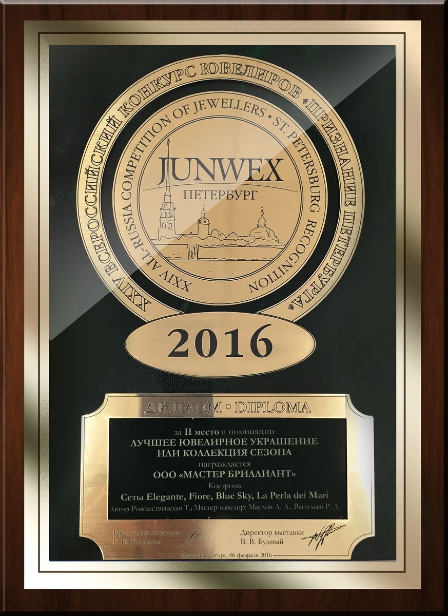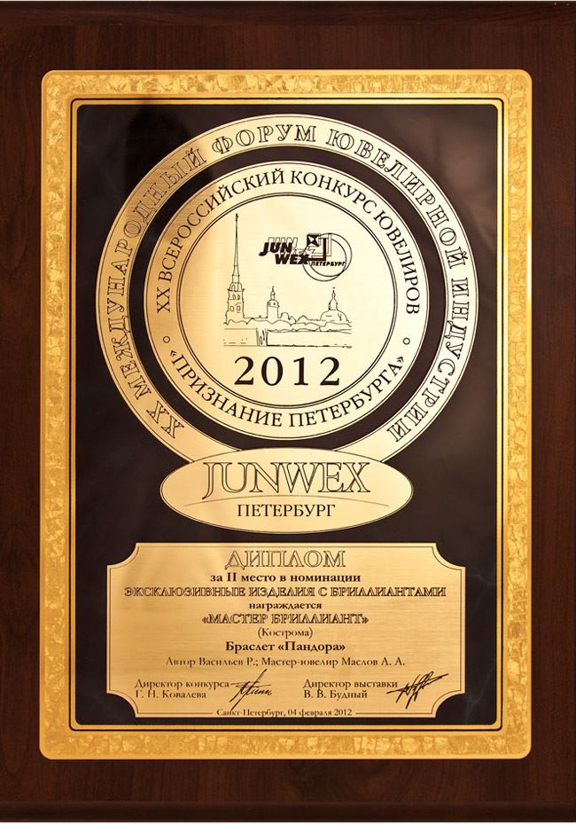 Диплом за II место в номинации "Лучшее украшение" на выставке JUNWEX ПЕТЕРБУРГ