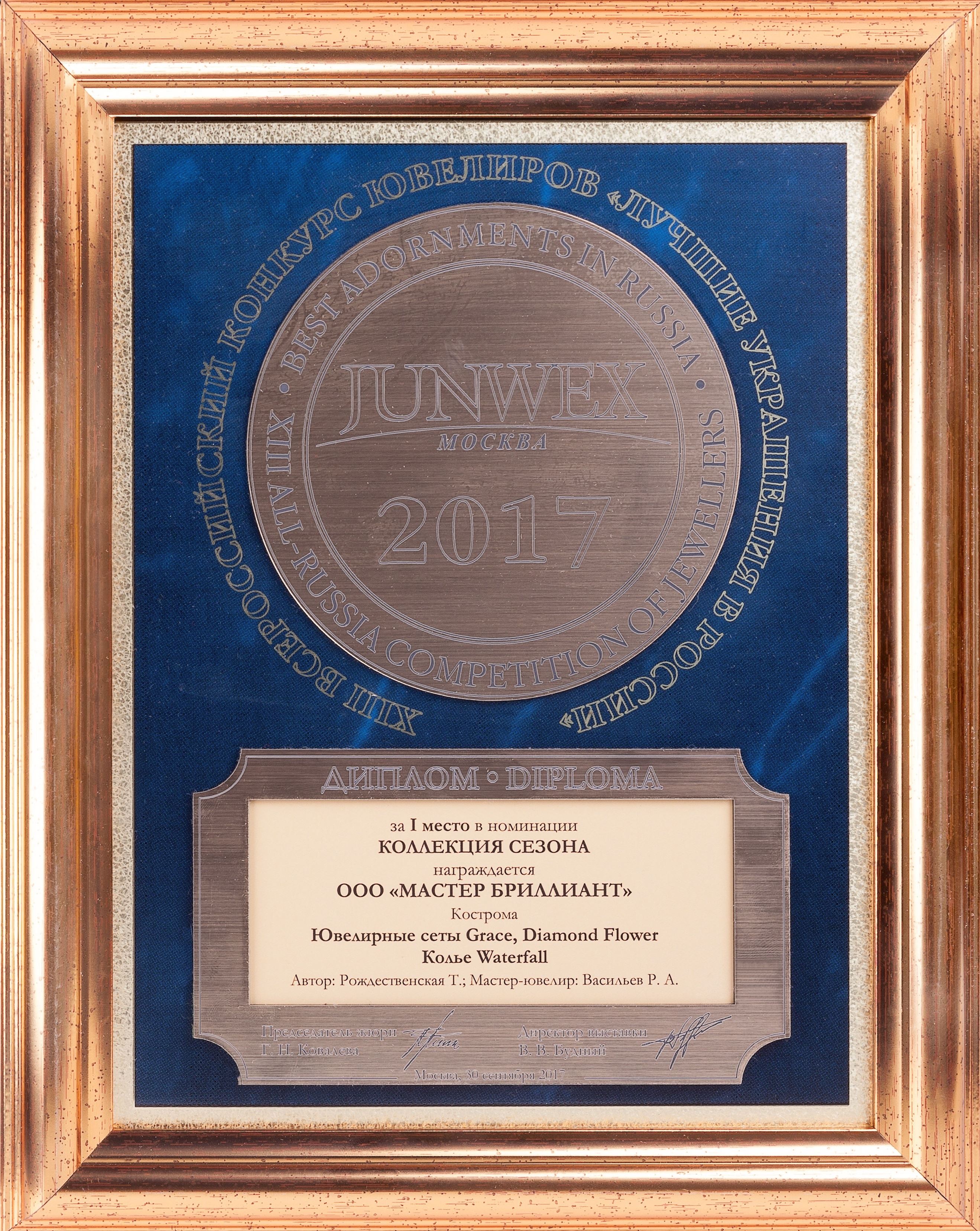 Диплом за I место в номинации "Коллекция Сезона" на выставке JUNWEX Москва 2017