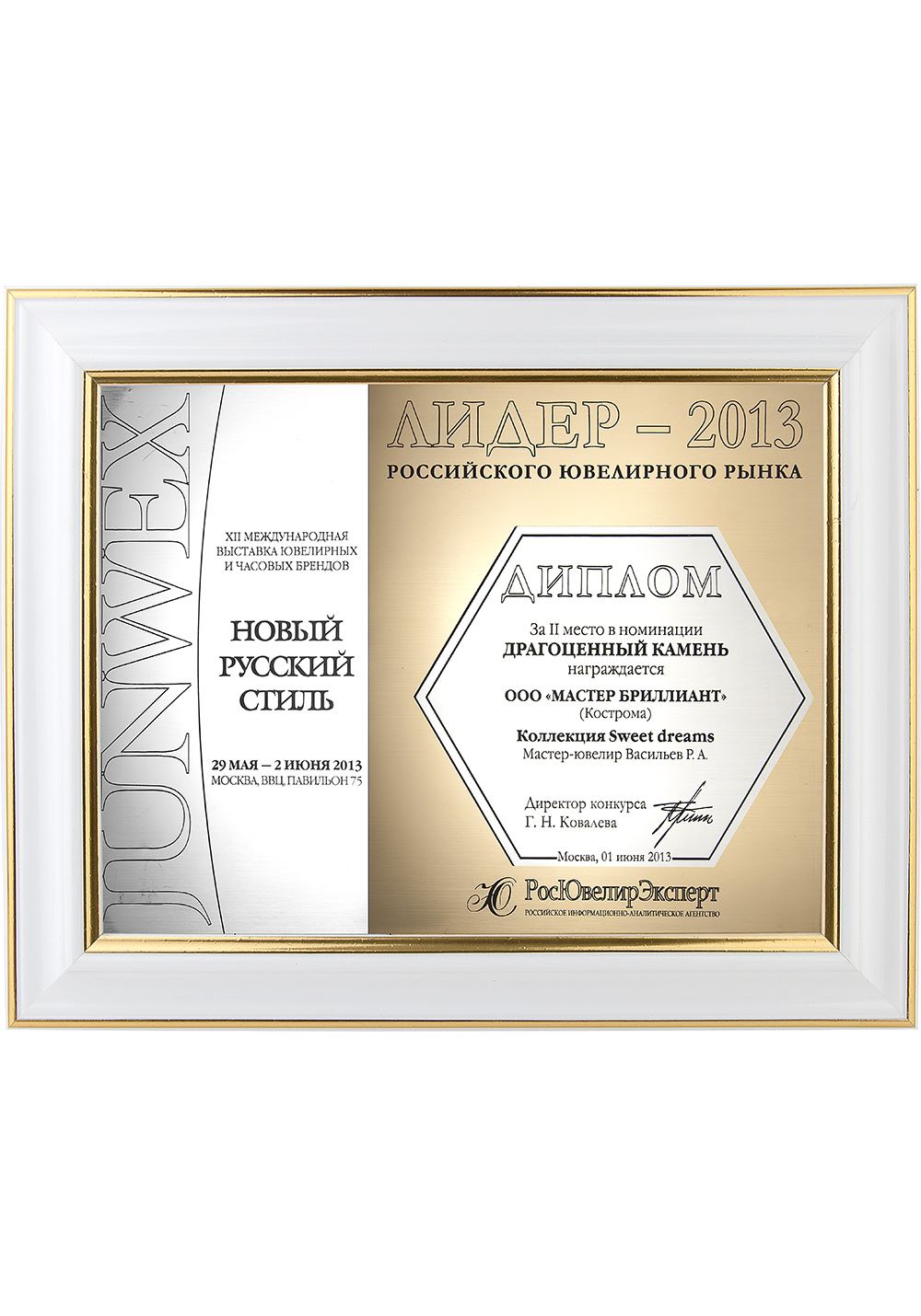 Диплом «Лидер 2013» за II место на выставке JUNWEX Новый Русский Стиль