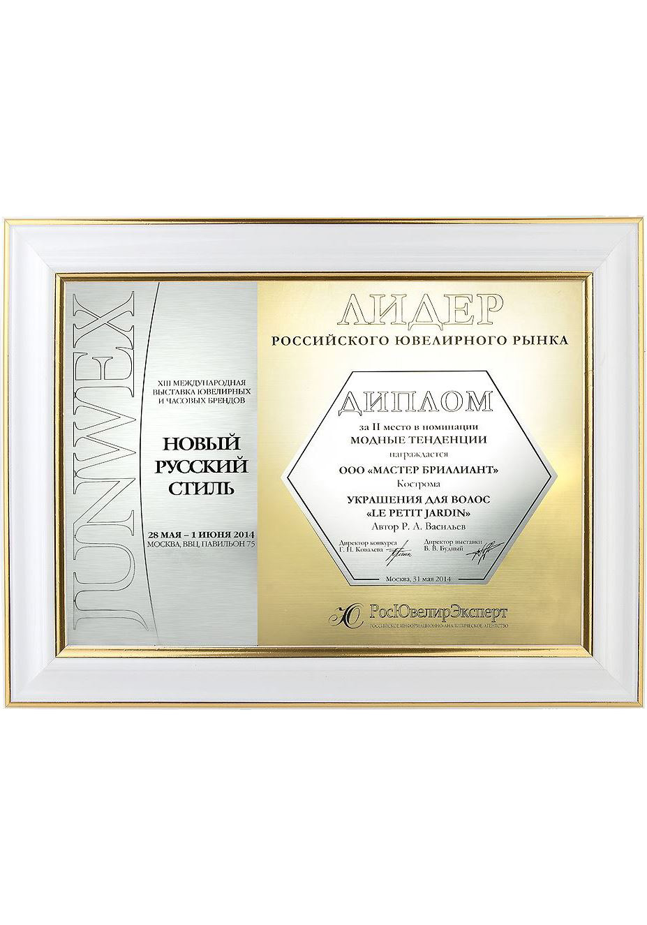 Диплом «Лидер 2014» за II место на выставке JUNWEX Новый Русский Стиль 2014