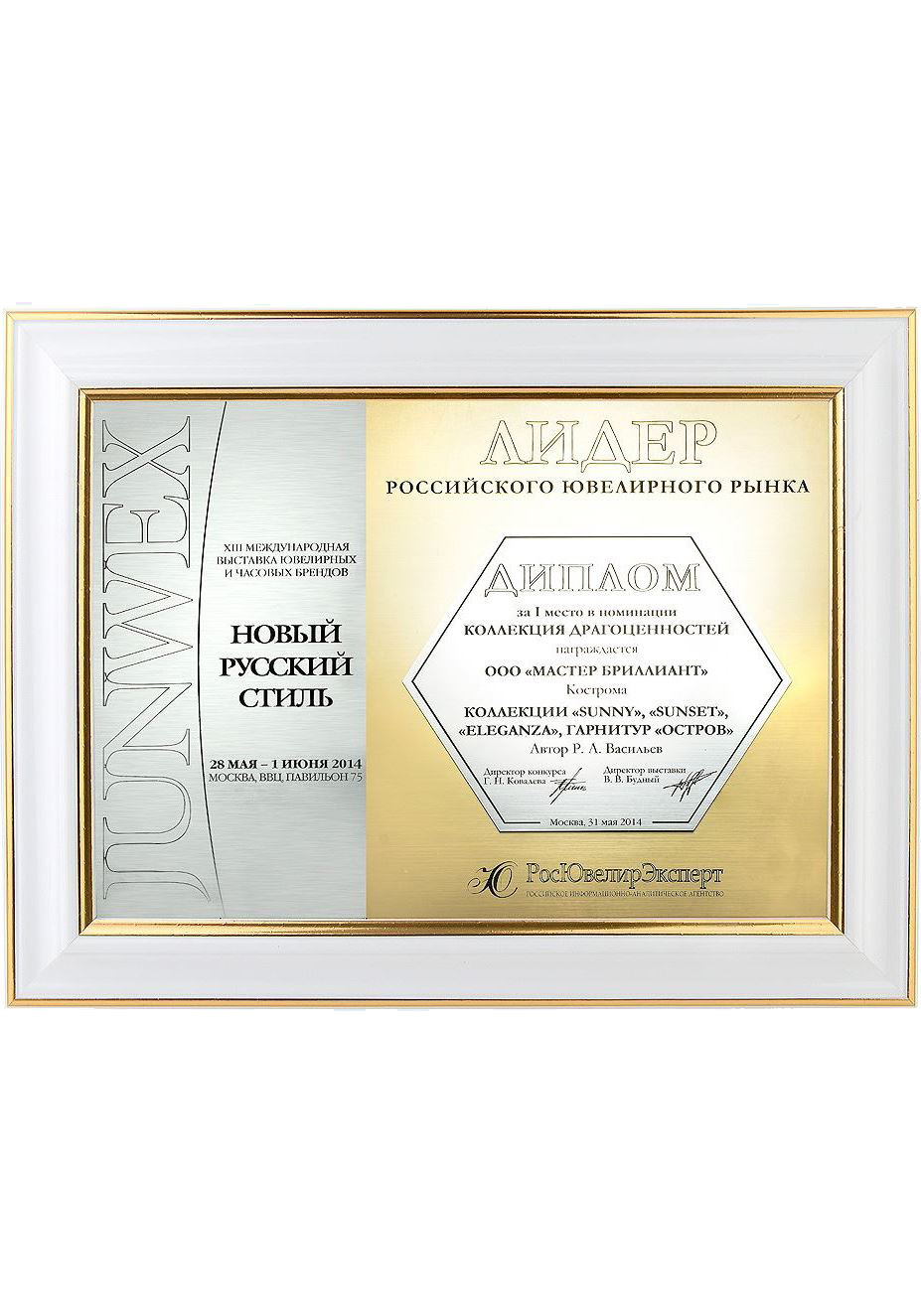 Диплом «Лидер 2014» за I место на выставке JUNWEX Новый Русский Стиль 2014