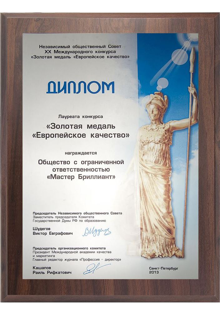 Золотая медаль «Европейское качество»