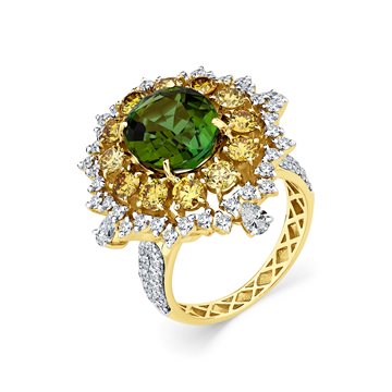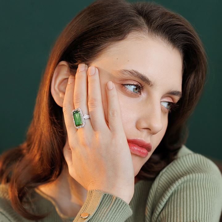Украшения невероятной красоты. Роскошные зеленые турмалины, обрамленные бриллиантовым блеском и заключенные в изящные формы, создают образ, который манит своей сладостью и очарованием. Он магически притягивает взгляды окружающих, наделяя свою владелицу настоящей силой обольщения!
