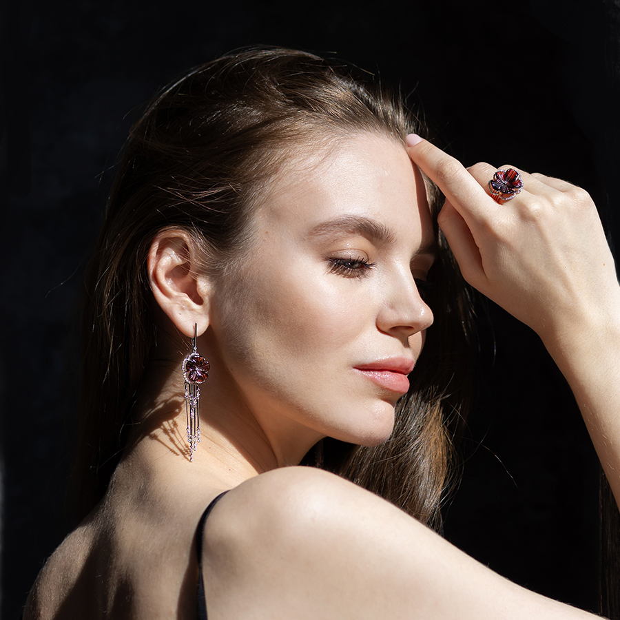 Да, как же красиво смотрятся объемные длинные серьги, кольца и броши в виде бутонов в форме яркий соцветий!