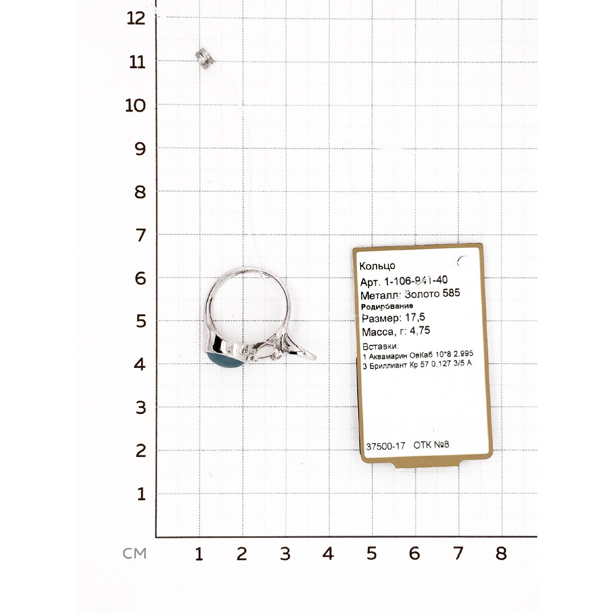 Кольцо со вставками аквамарин, бриллиант арт. 1-106-941-40