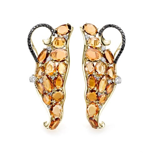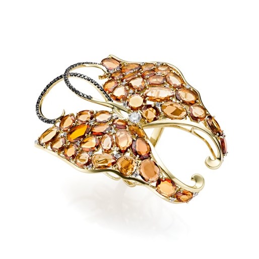 Кольца со вставками бриллиант, бриллиант черный, спессартин арт. 1-106-988-34