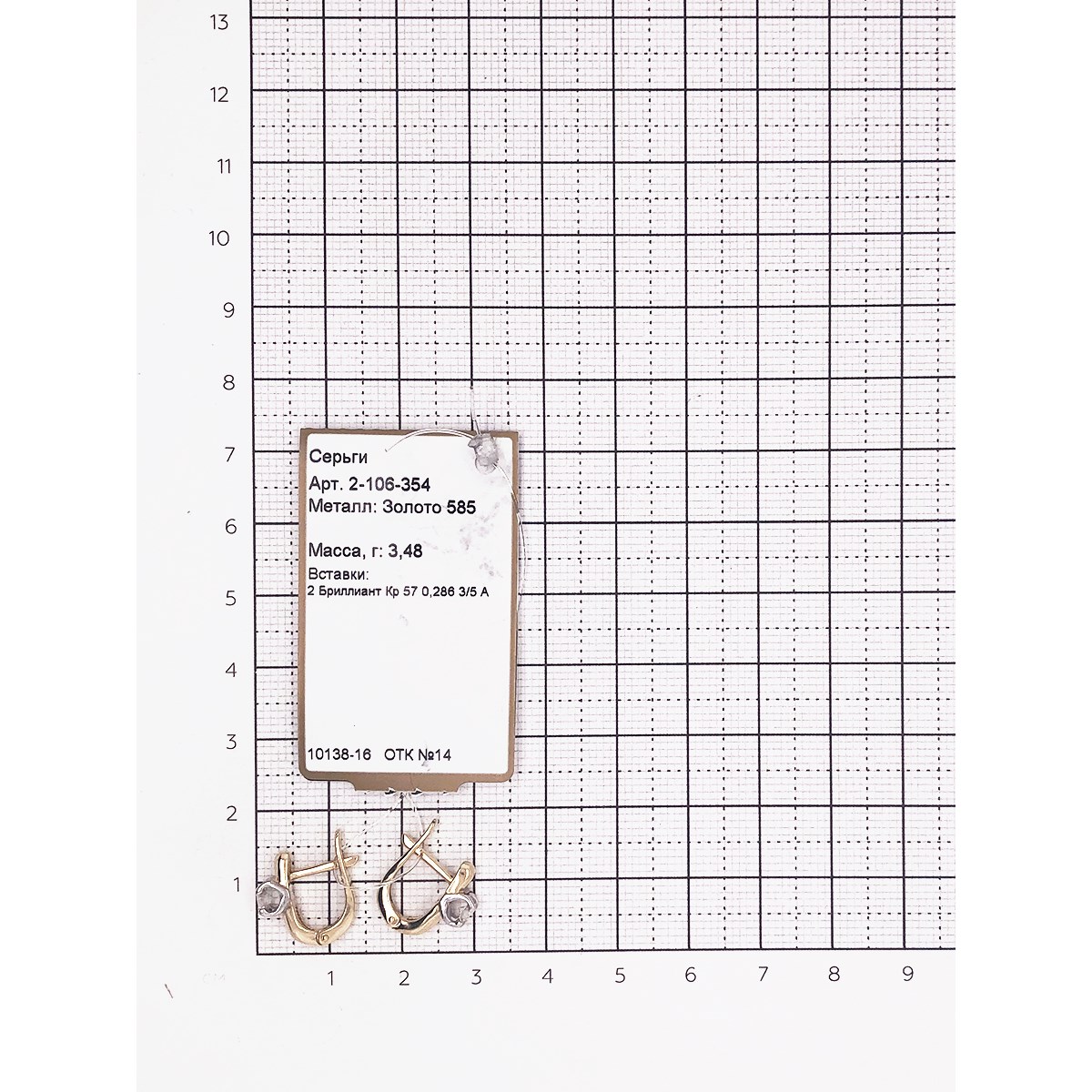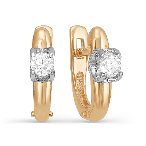 Серьги жёлтое, красное, белое золото 585 пробы со вставкой бриллиант арт. 2-106-354