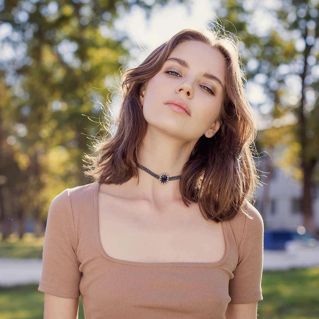 Колье со вставками сапфир облагороженный, бриллиант, гематит арт. 6-281-02