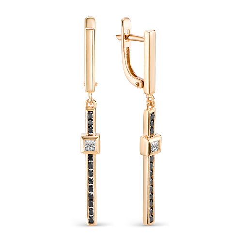 Серьги со вставками бриллиант, бриллиант черный арт. 2-106-953