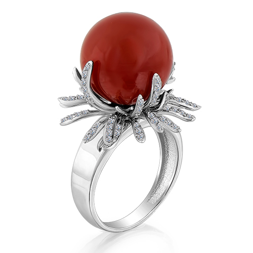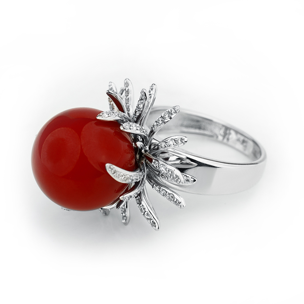 Кольцо со вставками коралл, бриллиант арт. 1-107-440-53
