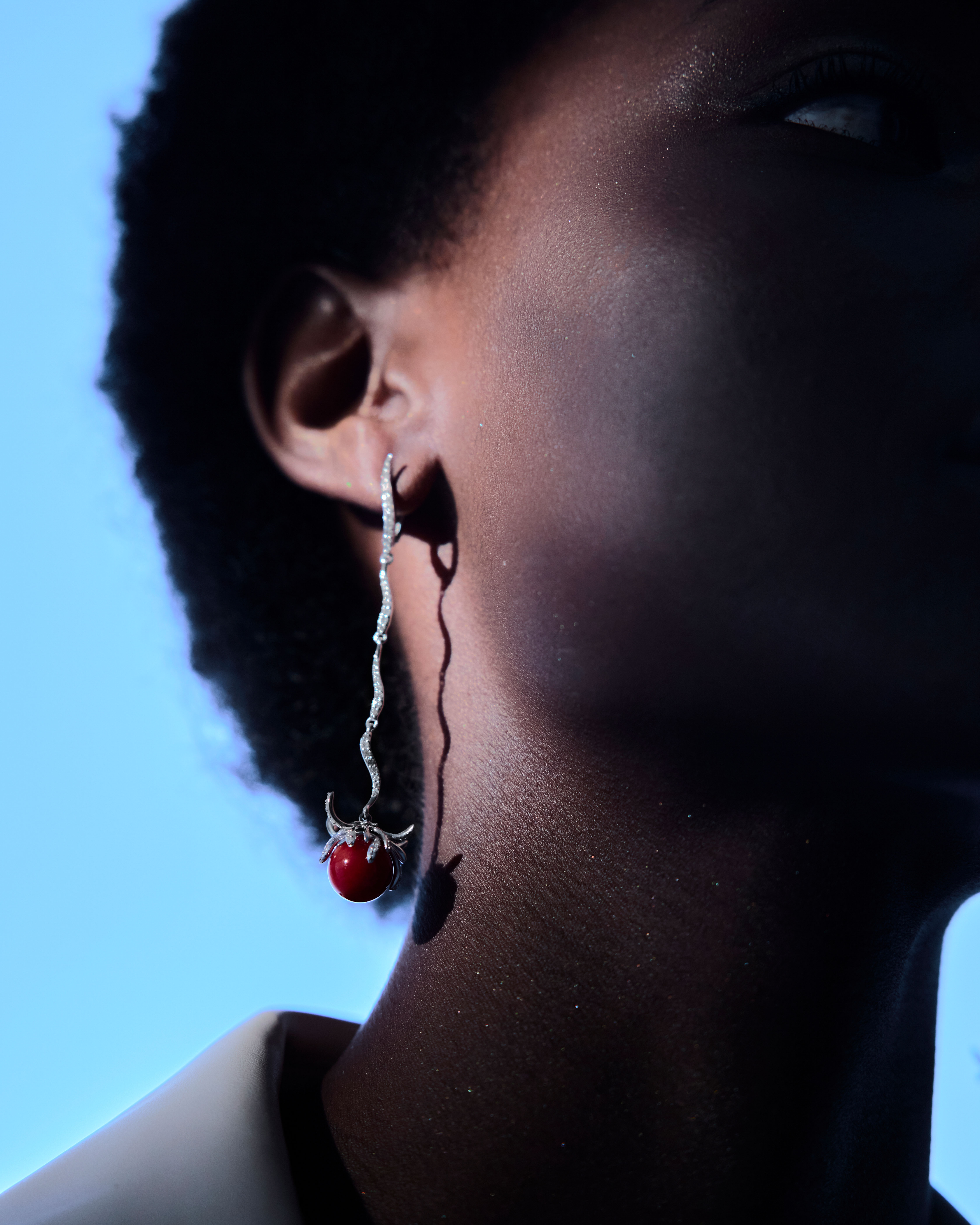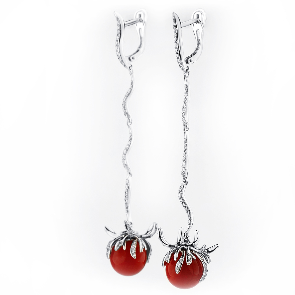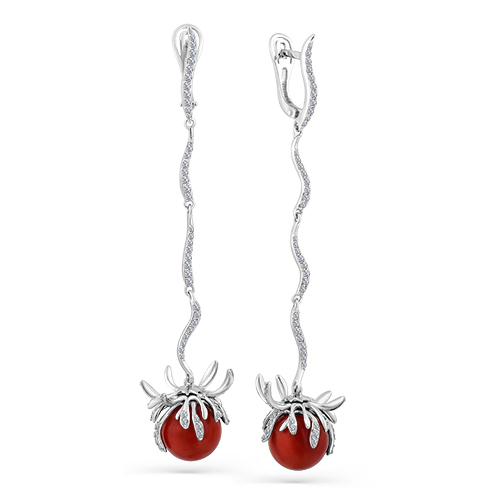 Серьги со вставками коралл, бриллиант арт. 2-107-440-53