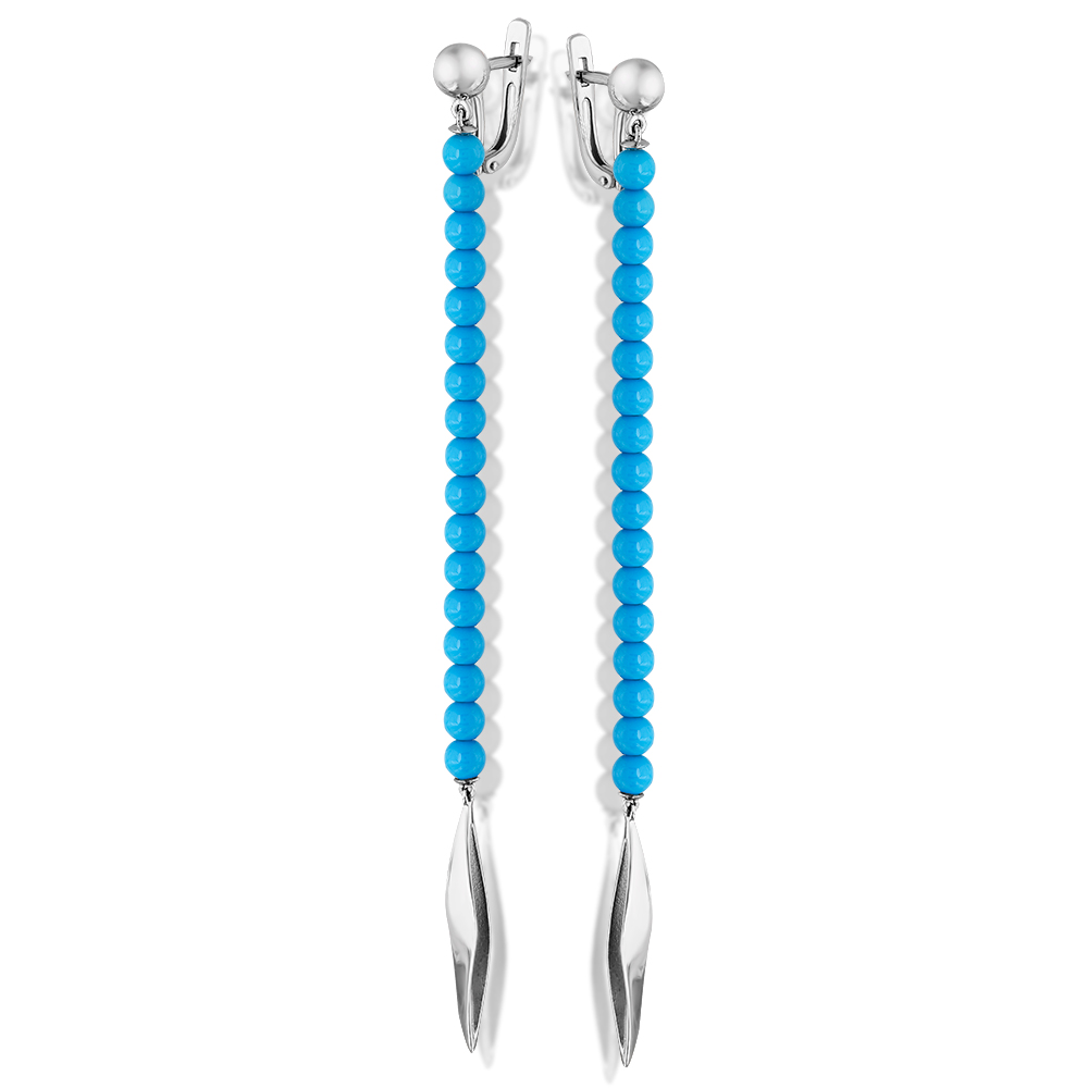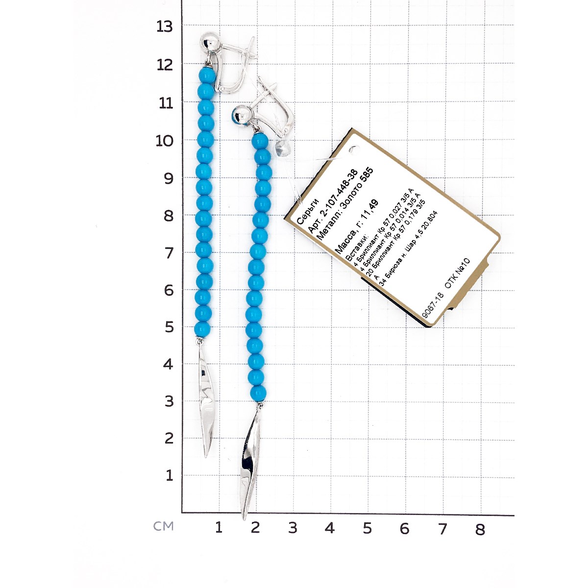 Серьги со вставками бирюза, бриллиант арт. 2-107-448-38