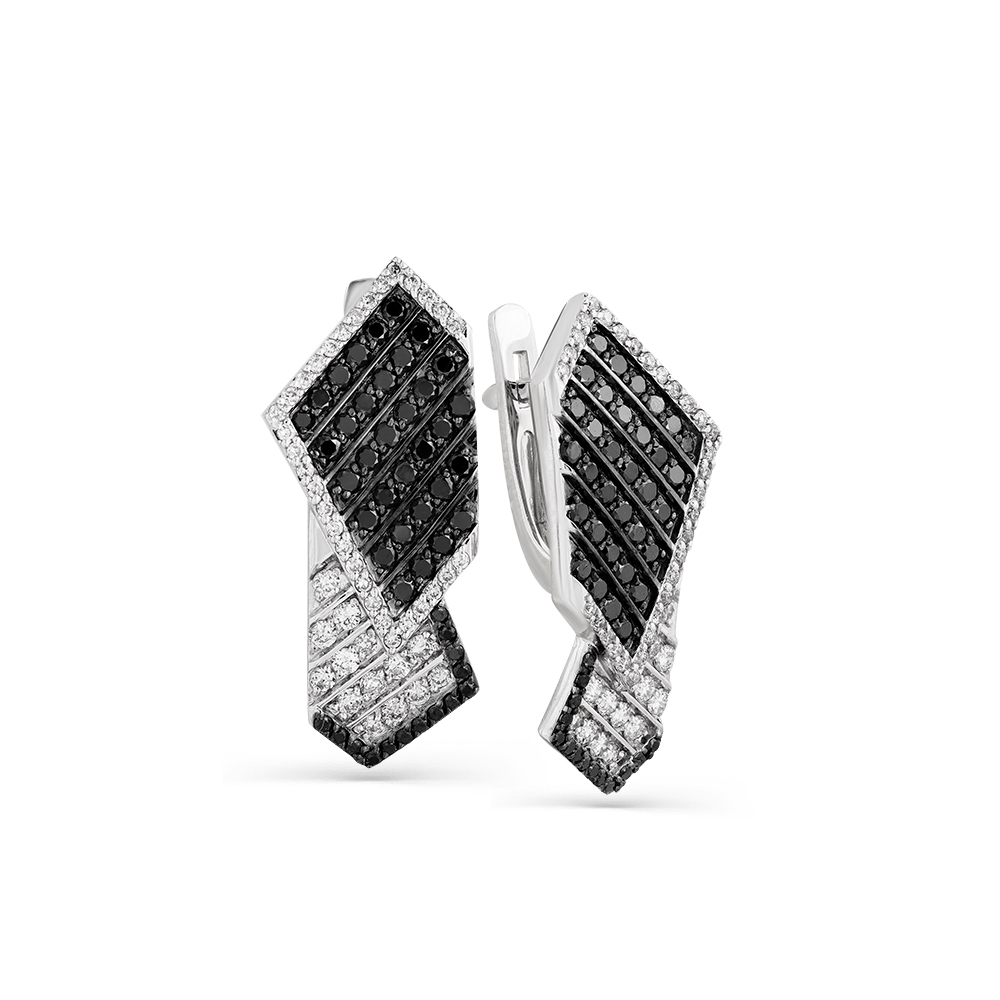 Кольцо белое золото 585 пробы со вставками бриллиант, бриллиант черный арт. 1-107-667-56