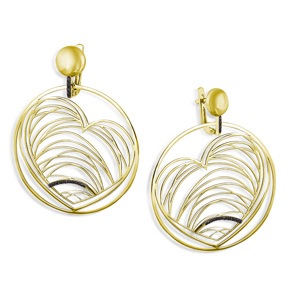 Серьги белое золото 585 пробы со вставкой бриллиант черный