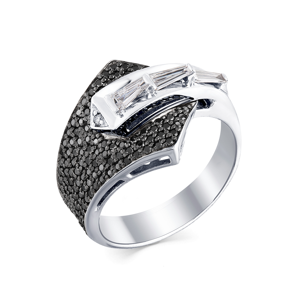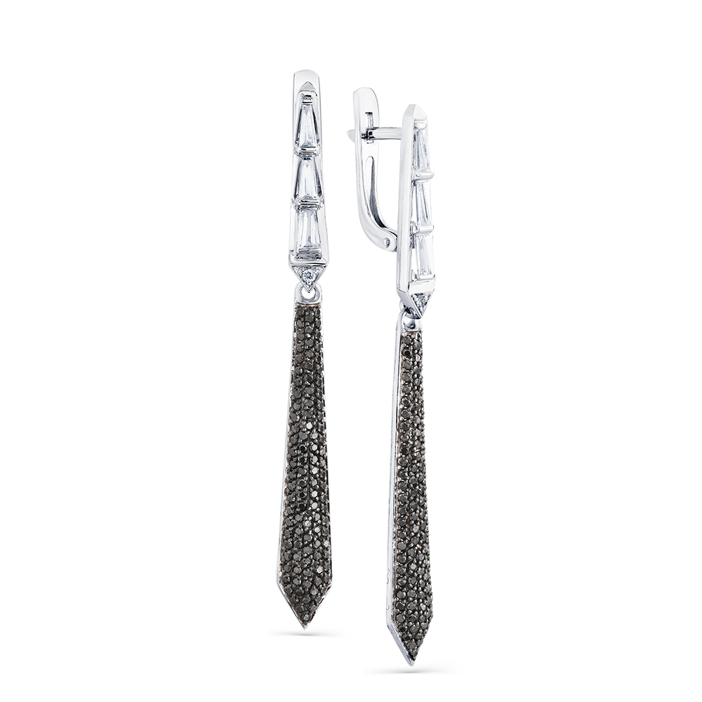 Серьги белое золото 585 пробы со вставками бриллиант черный, бриллиант