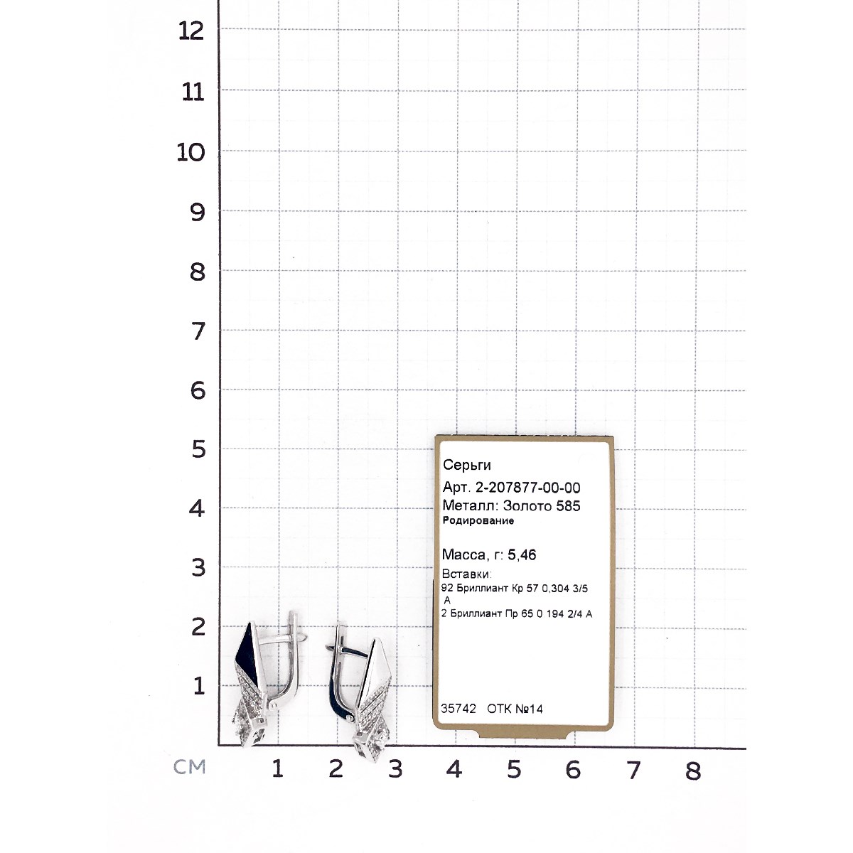 Серьги белое золото 585 пробы со вставкой бриллиант арт. 2-207877-00-00