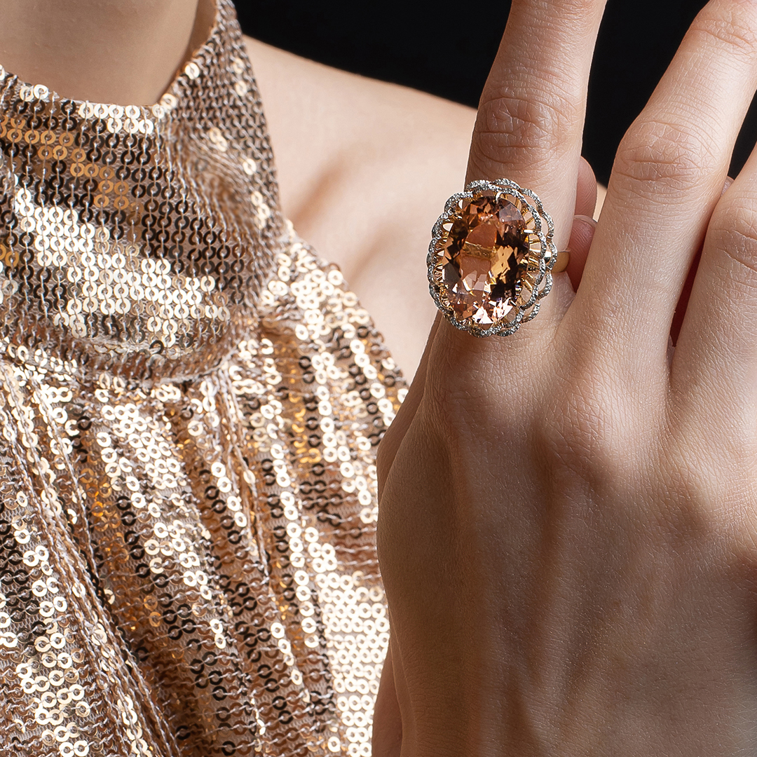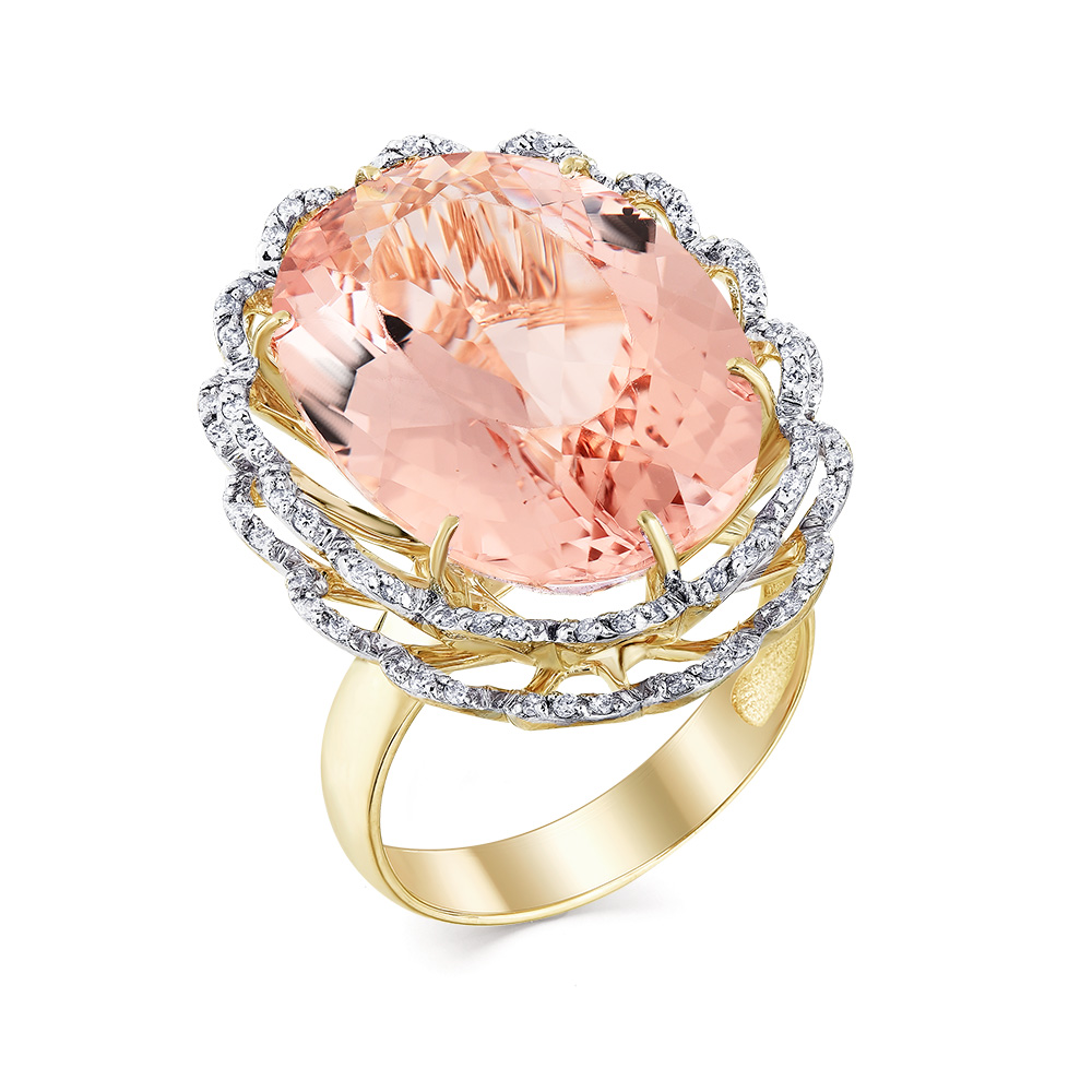 Кольцо со вставками морганит, бриллиант арт. 1-107-743-13