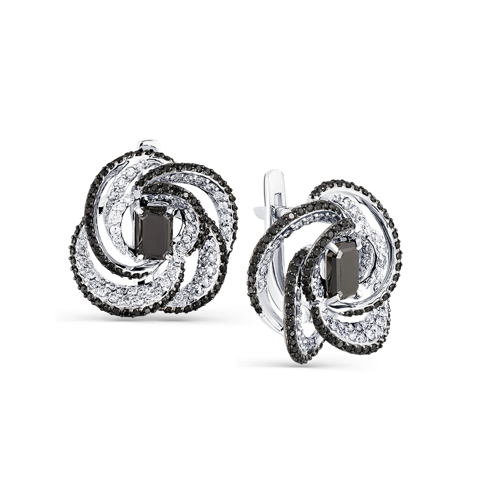 Серьги со вставками бриллиант, бриллиант черный арт. 2-207859-01-55