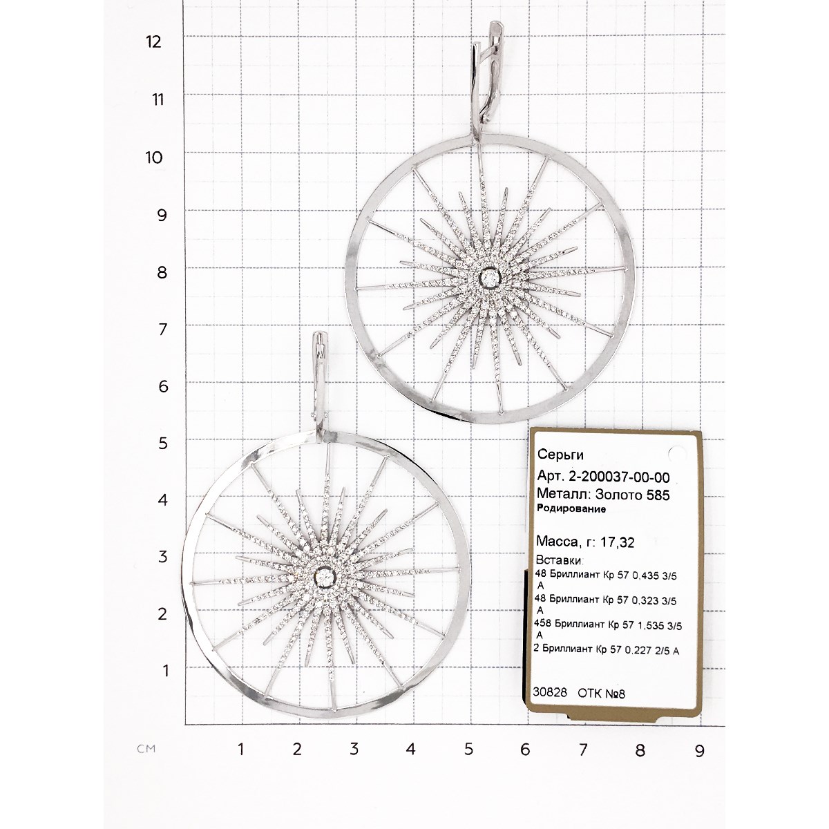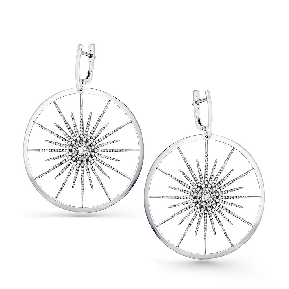 Серьги белое золото 585 пробы со вставкой бриллиант арт. 2-200037-00-00