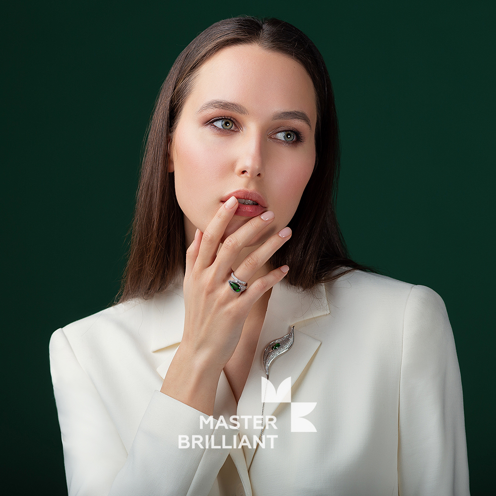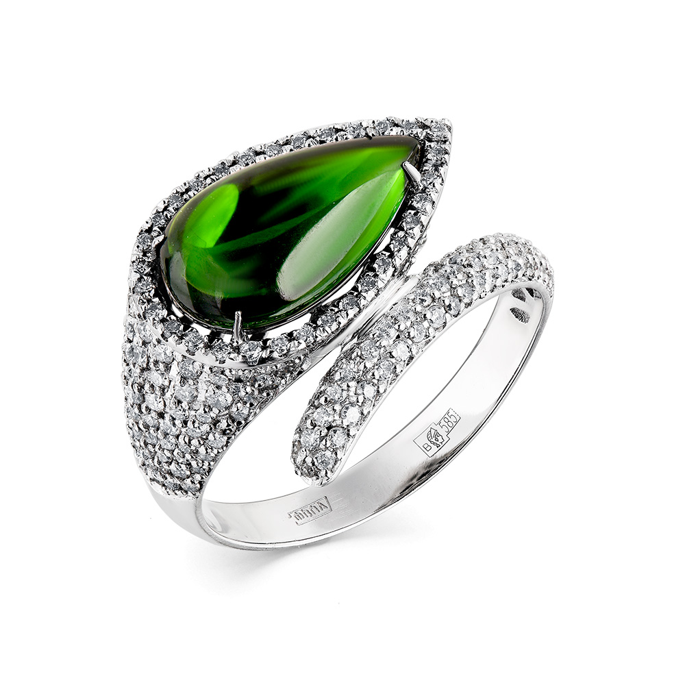 Кольцо со вставками бриллиант, хромдиопсид арт. 1-208073-00-37