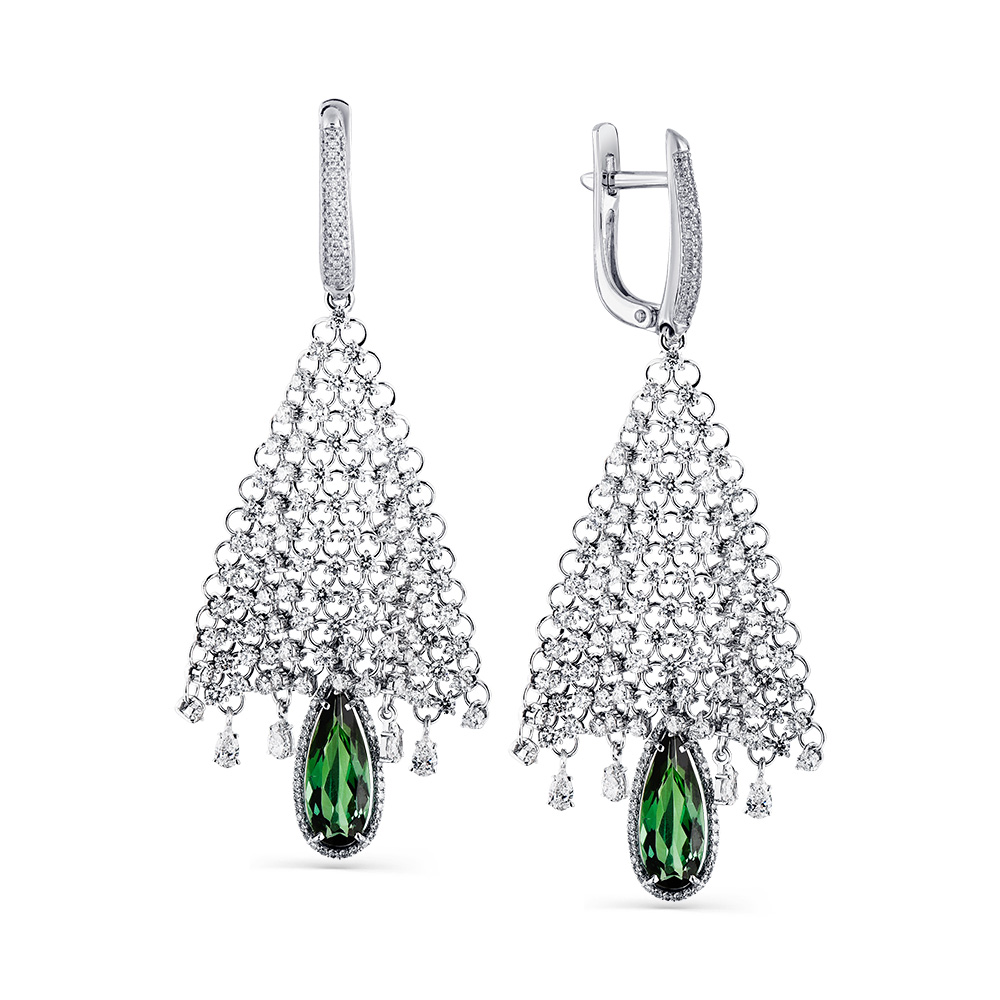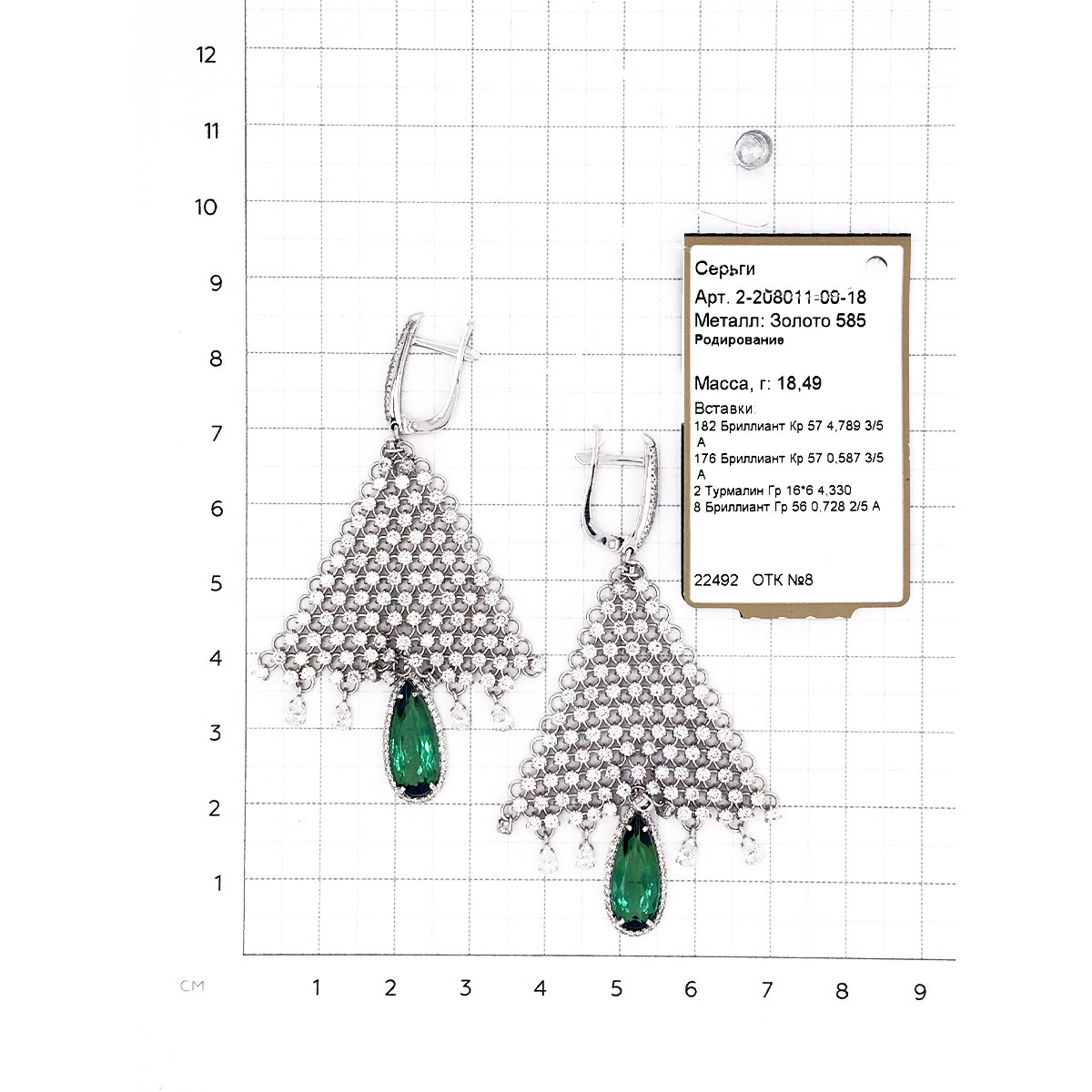 Серьги белое золото 585 пробы со вставками бриллиант, турмалин арт. 2-208011-00-18