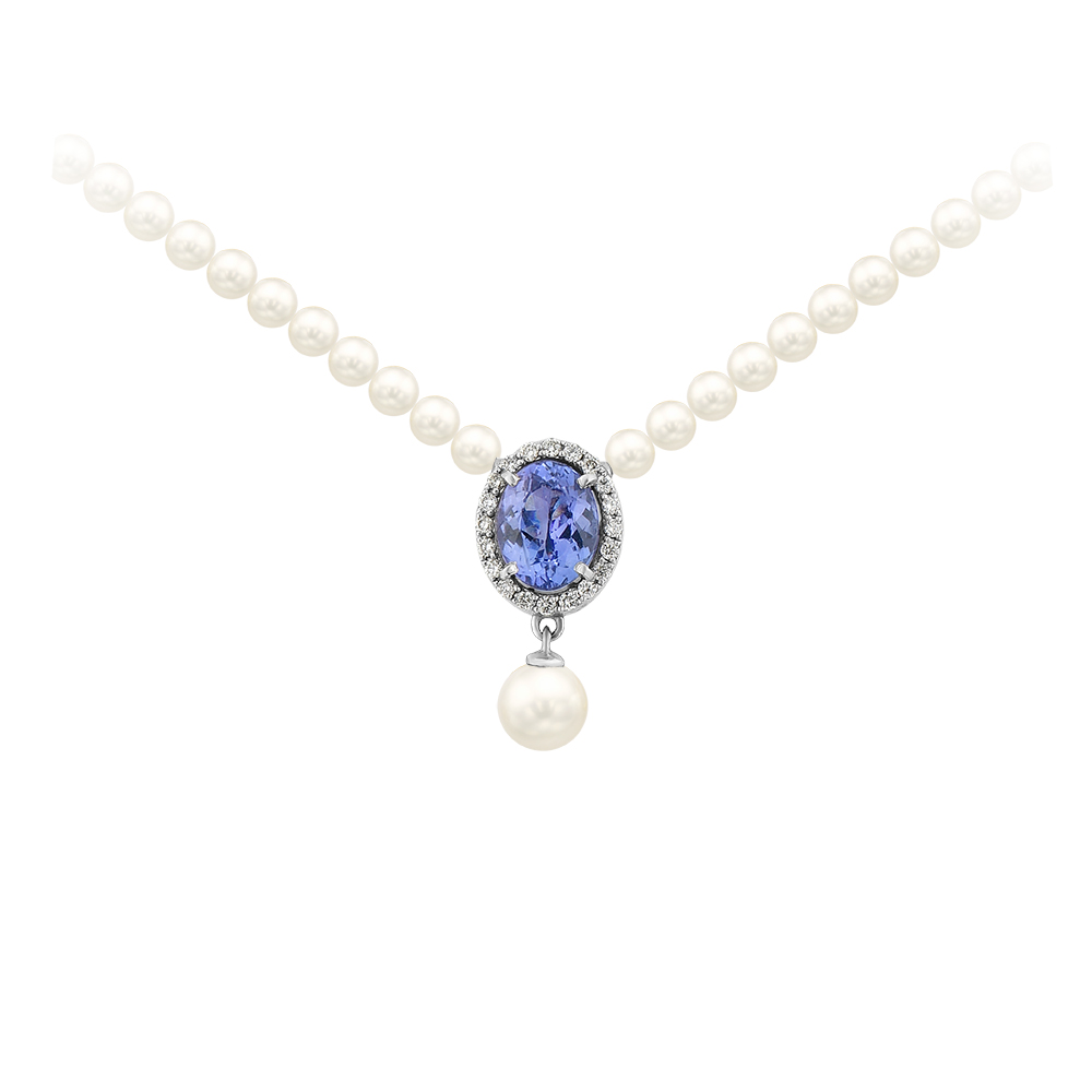 Колье со вставками бриллиант, танзанит, жемчуг культивированный
