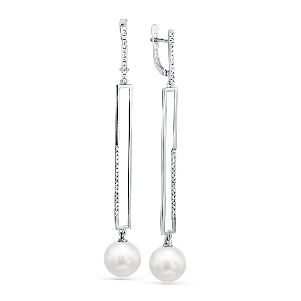 Серьги белое золото 585 пробы со вставками жемчуг культивированный, бриллиант арт. 2-208068-00-28