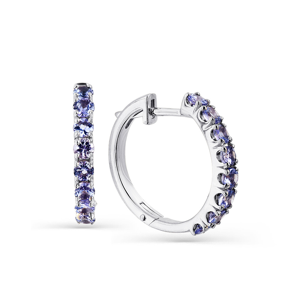 Серьги белое золото 585 пробы со вставкой танзанит
