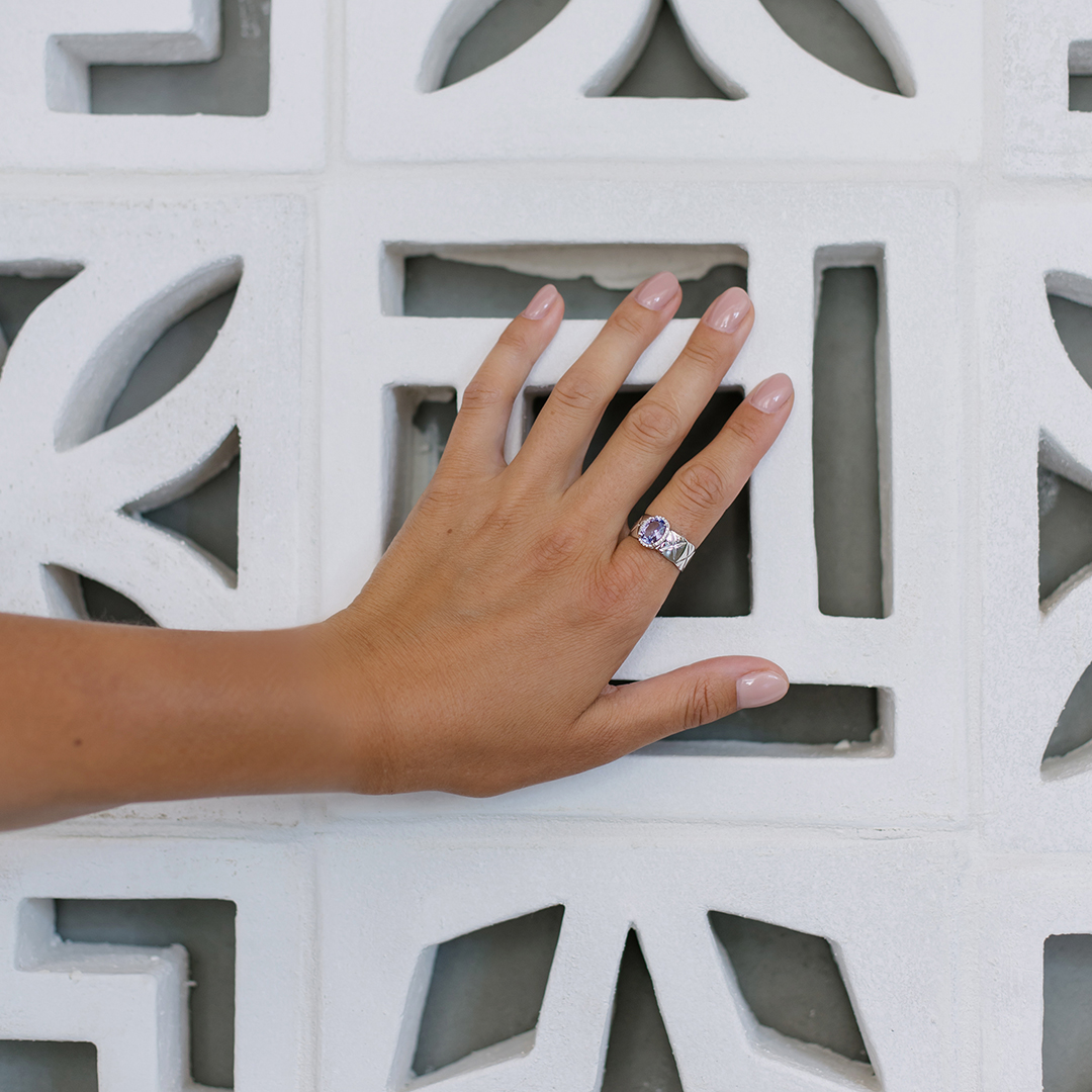 Кольцо белое золото 585 пробы со вставками танзанит, бриллиант