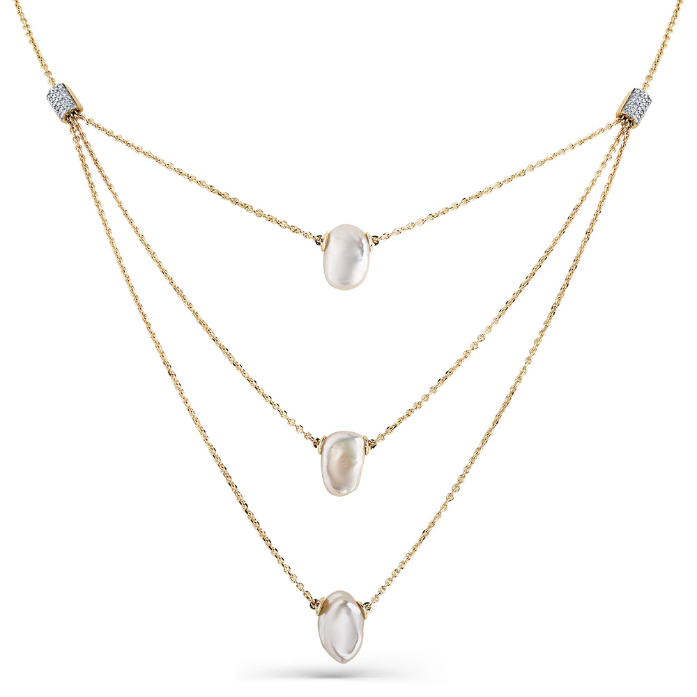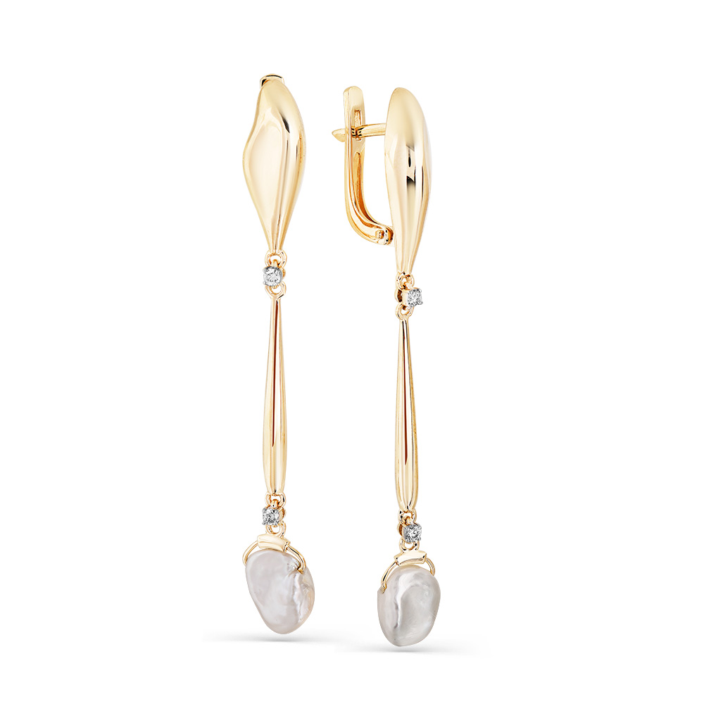 Серьги жёлтое золото 585 пробы со вставками жемчуг культивированный, бриллиант