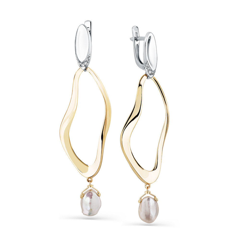 Серьги со вставками жемчуг культивированный, бриллиант арт. 2-508179-00-28