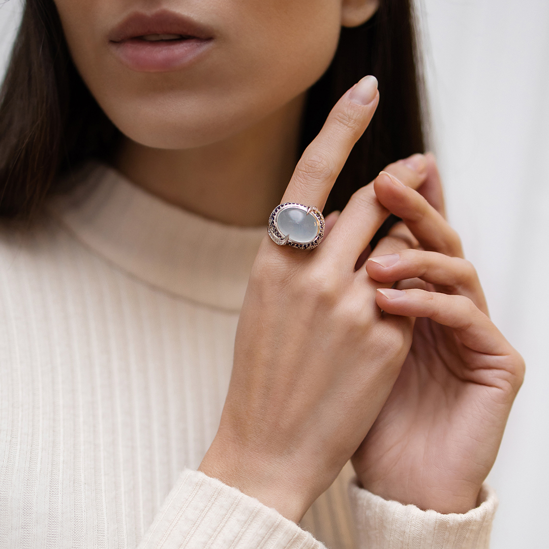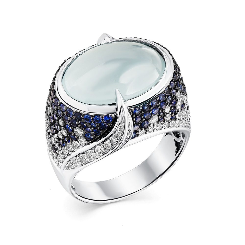 Кольцо со вставками аквамарин, бриллиант, сапфир н. арт. 1-208276-00-55