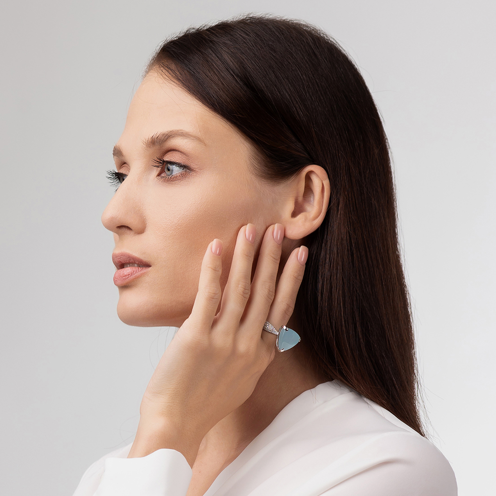 Кольцо со вставками аквамарин, бриллиант арт. 1-107-744-40