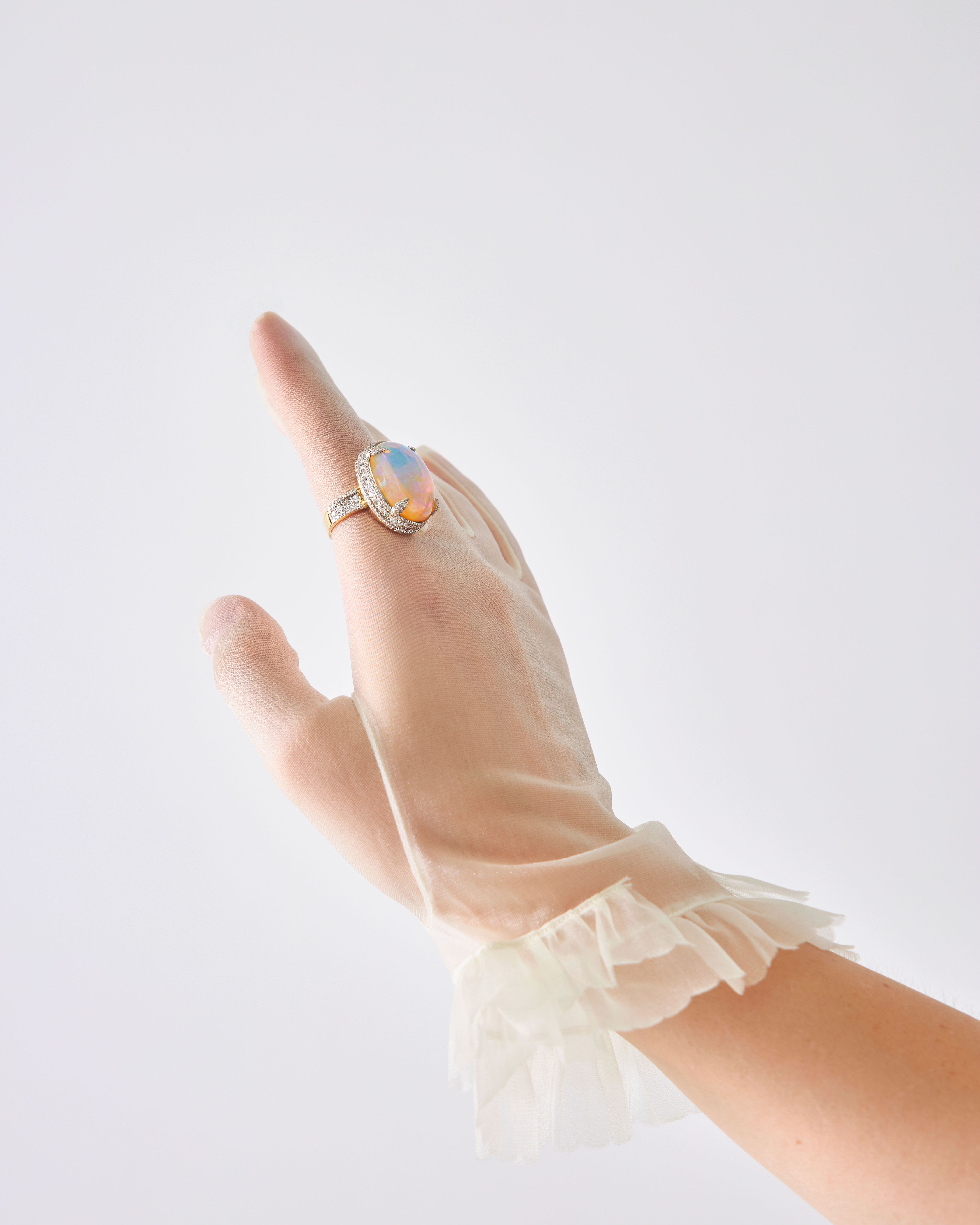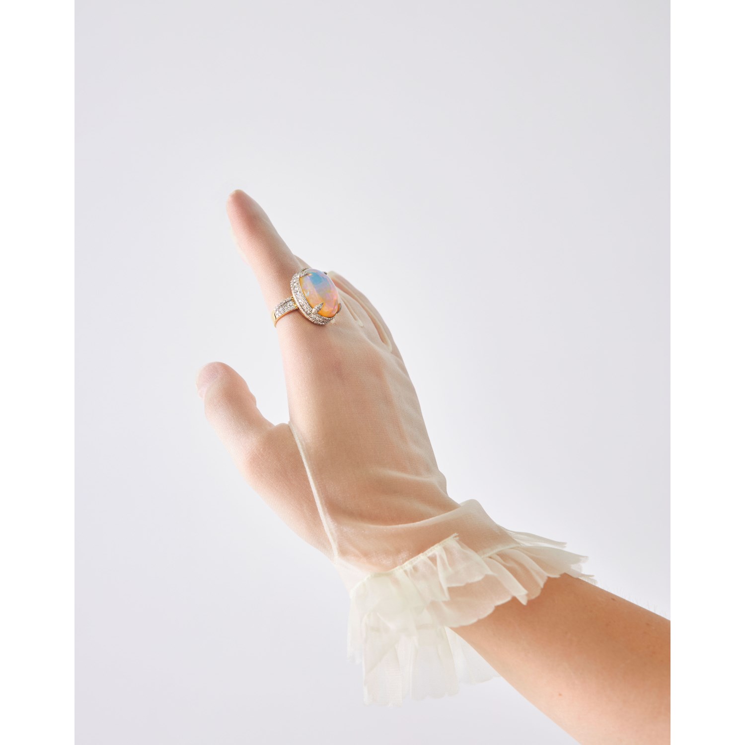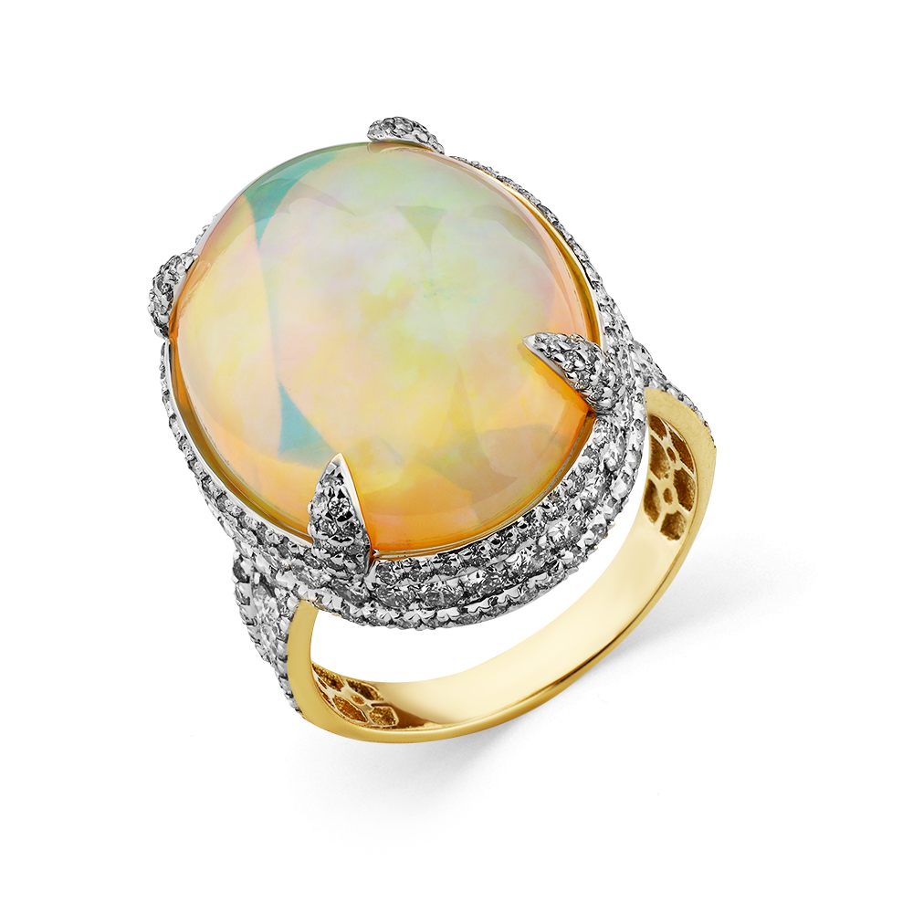 Кольцо жёлтое золото 585 пробы со вставками опал синтетический, бриллиант