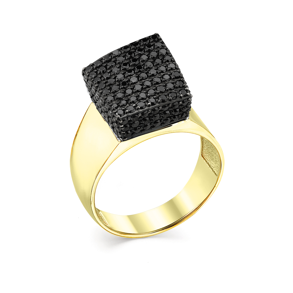 Кольцо жёлтое/белое золото 585 пробы со вставкой бриллиант черный арт. 1-508175-00-48