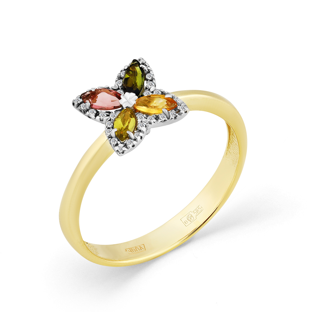 Серьги жёлтое золото 585 пробы со вставками турмалин мультиколор, бриллиант арт. 2-302116-00-60