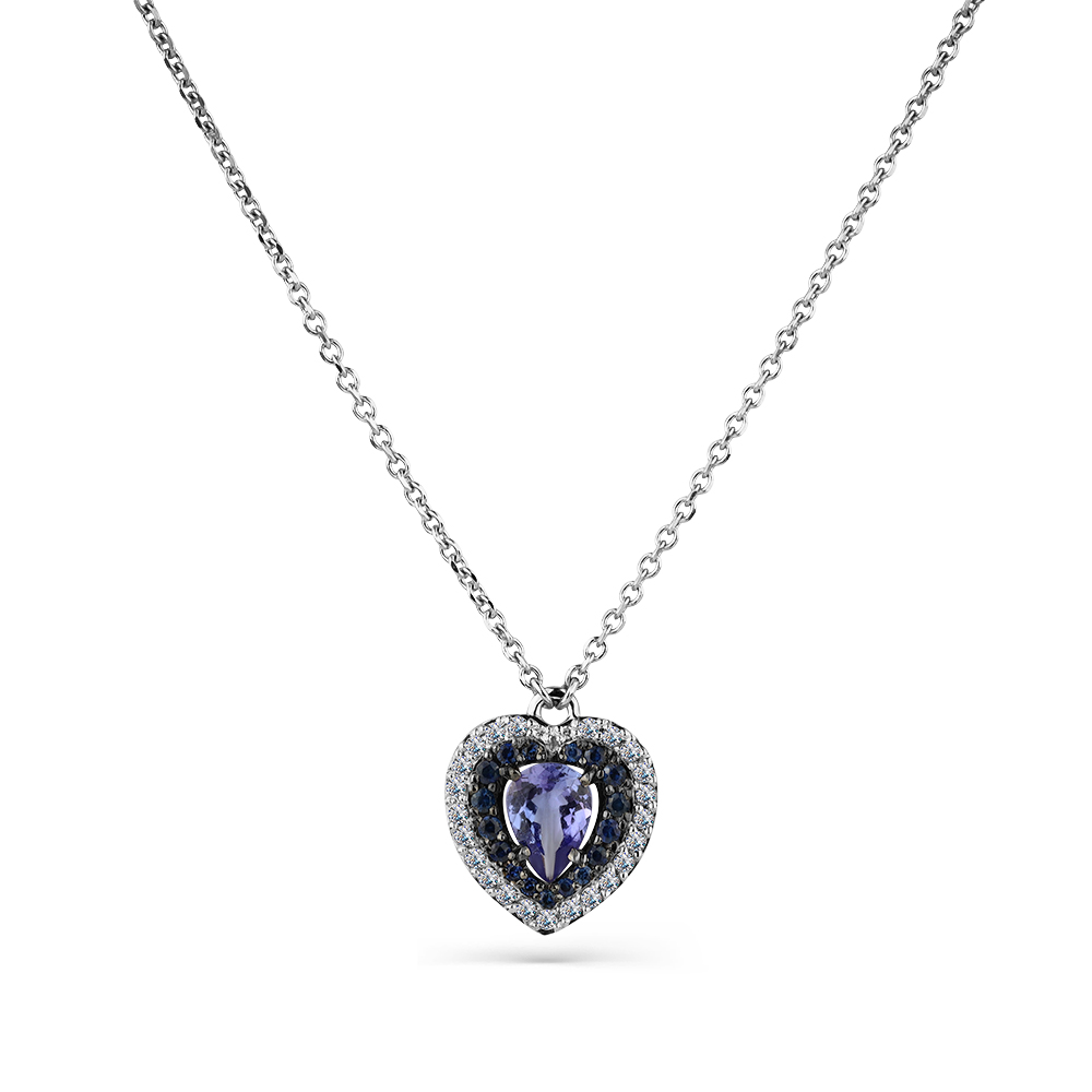 Серьги белое золото 585 пробы со вставками танзанит, бриллиант, сапфир н. арт. 2-208374-01-55