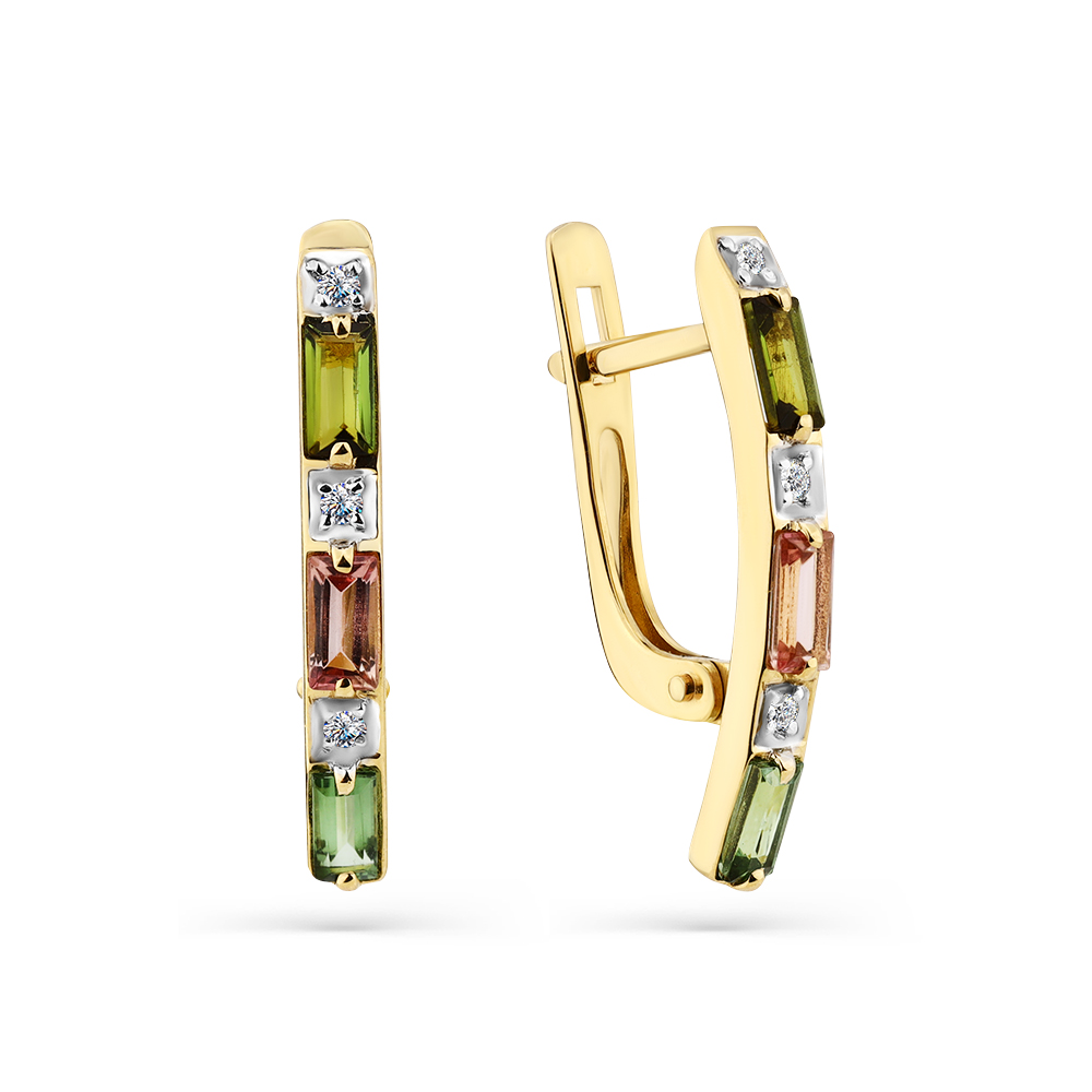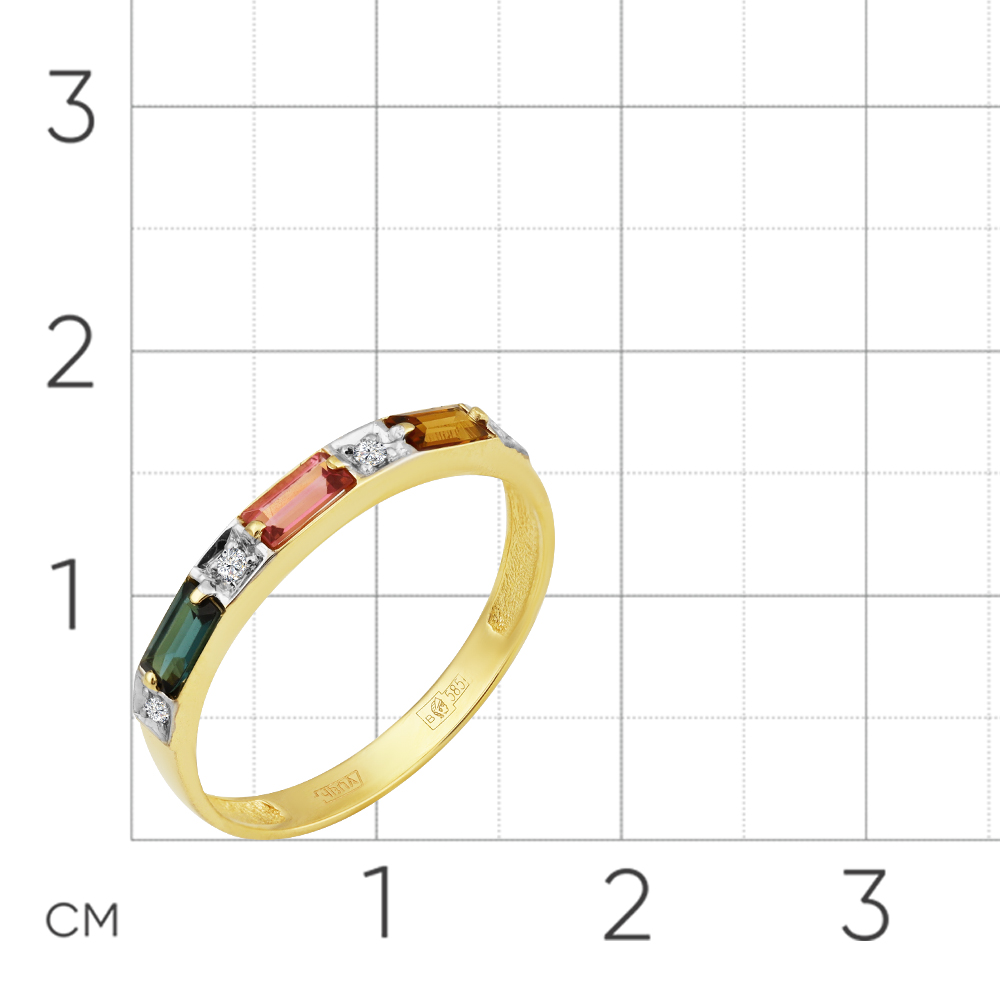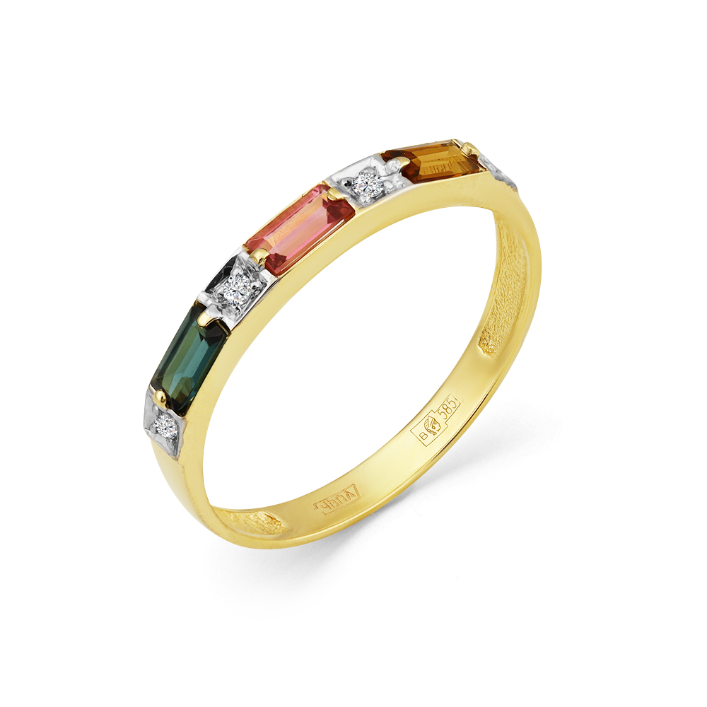 Кольцо жёлтое золото 585 пробы со вставками турмалин мультиколор, бриллиант арт. 1-308419-00-60