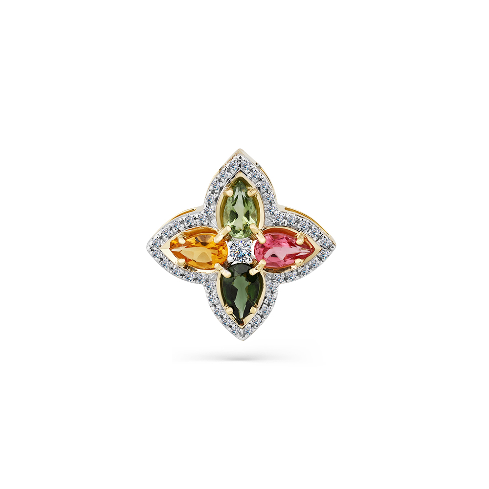 Подвеска жёлтое золото 585 пробы со вставками турмалин мультиколор, бриллиант