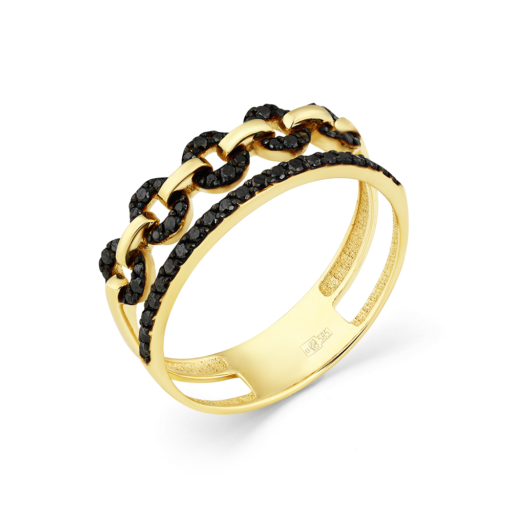 Кольцо жёлтое золото 585 пробы со вставкой бриллиант черный
