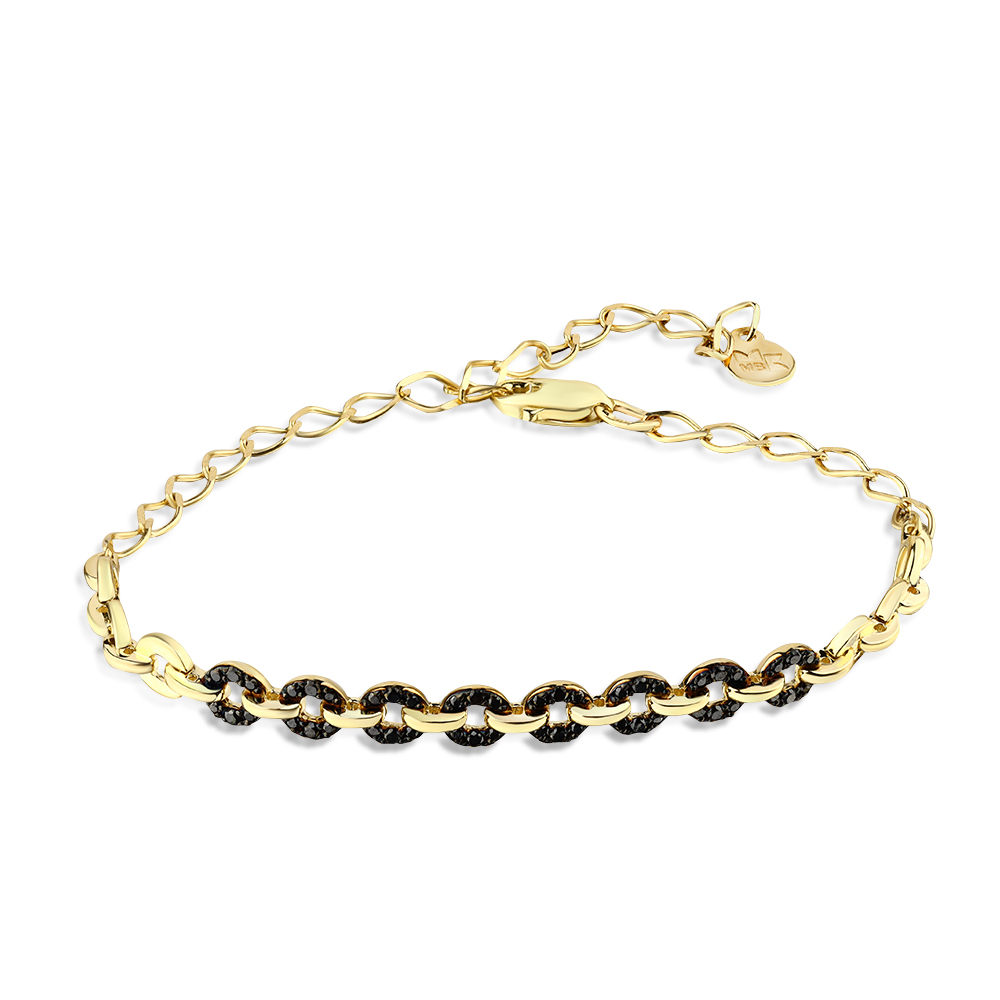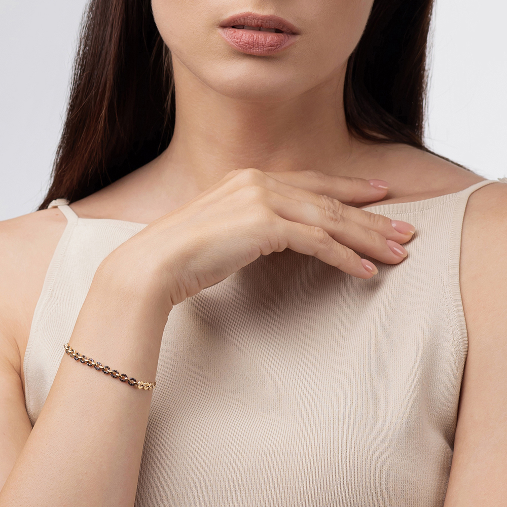 Браслет жёлтое золото 585 пробы со вставкой бриллиант черный