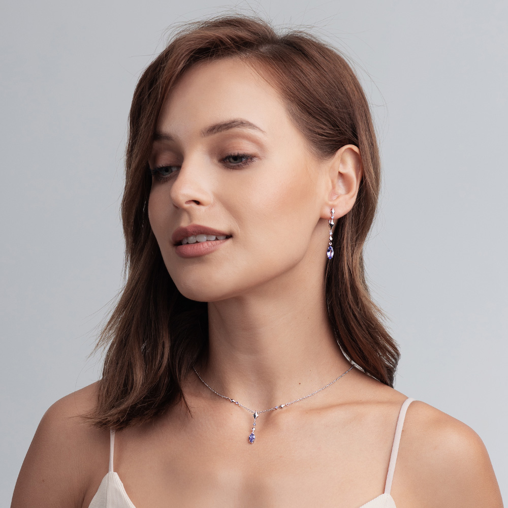 Колье белое золото 585 пробы со вставкой танзанит