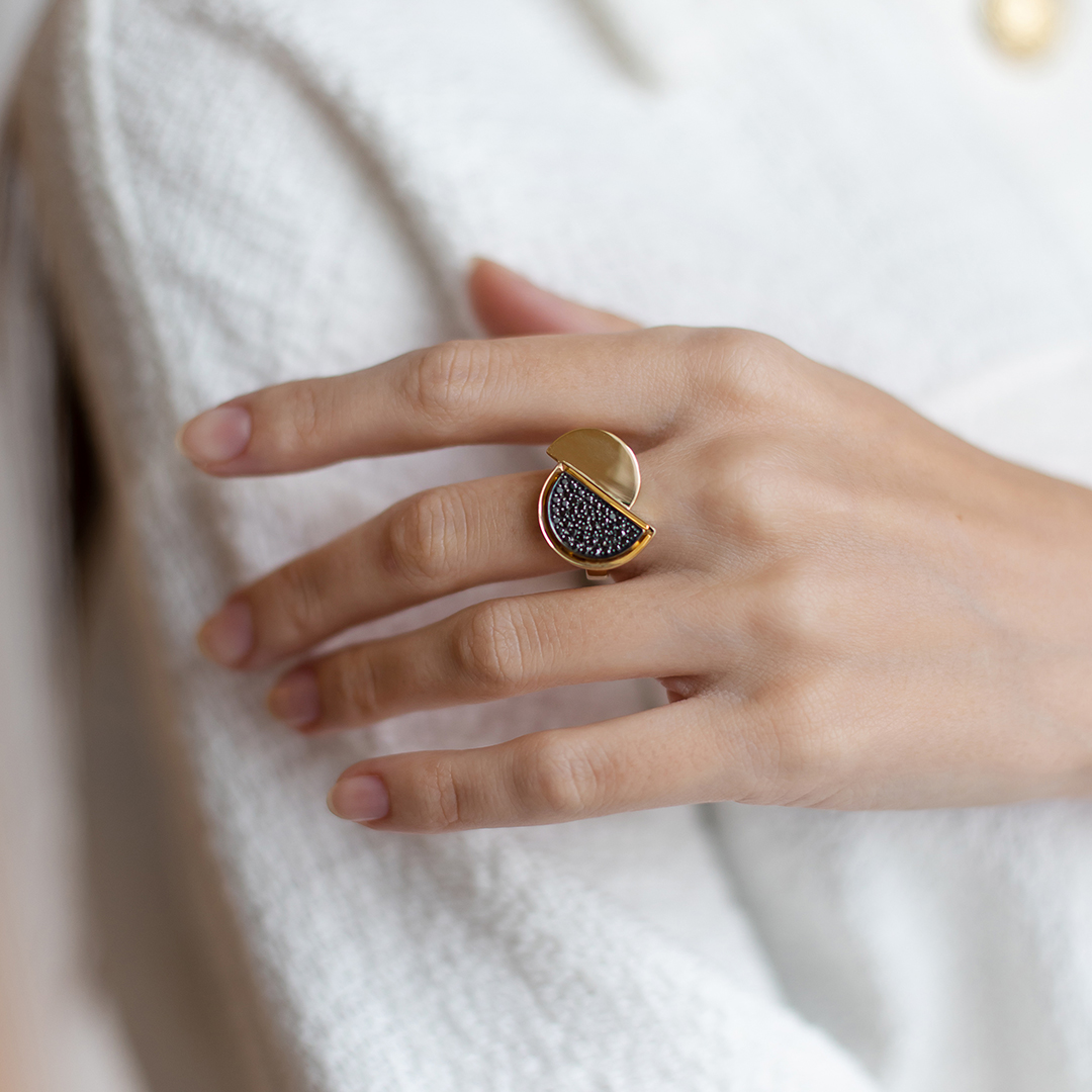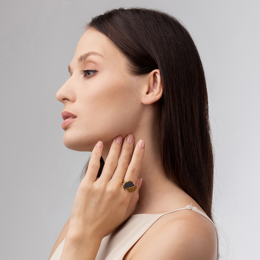 Кольцо жёлтое золото 585 пробы со вставкой бриллиант черный