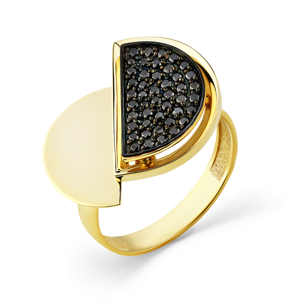 Кольцо жёлтое золото 585 пробы со вставкой бриллиант черный арт. 1-300049-00-48