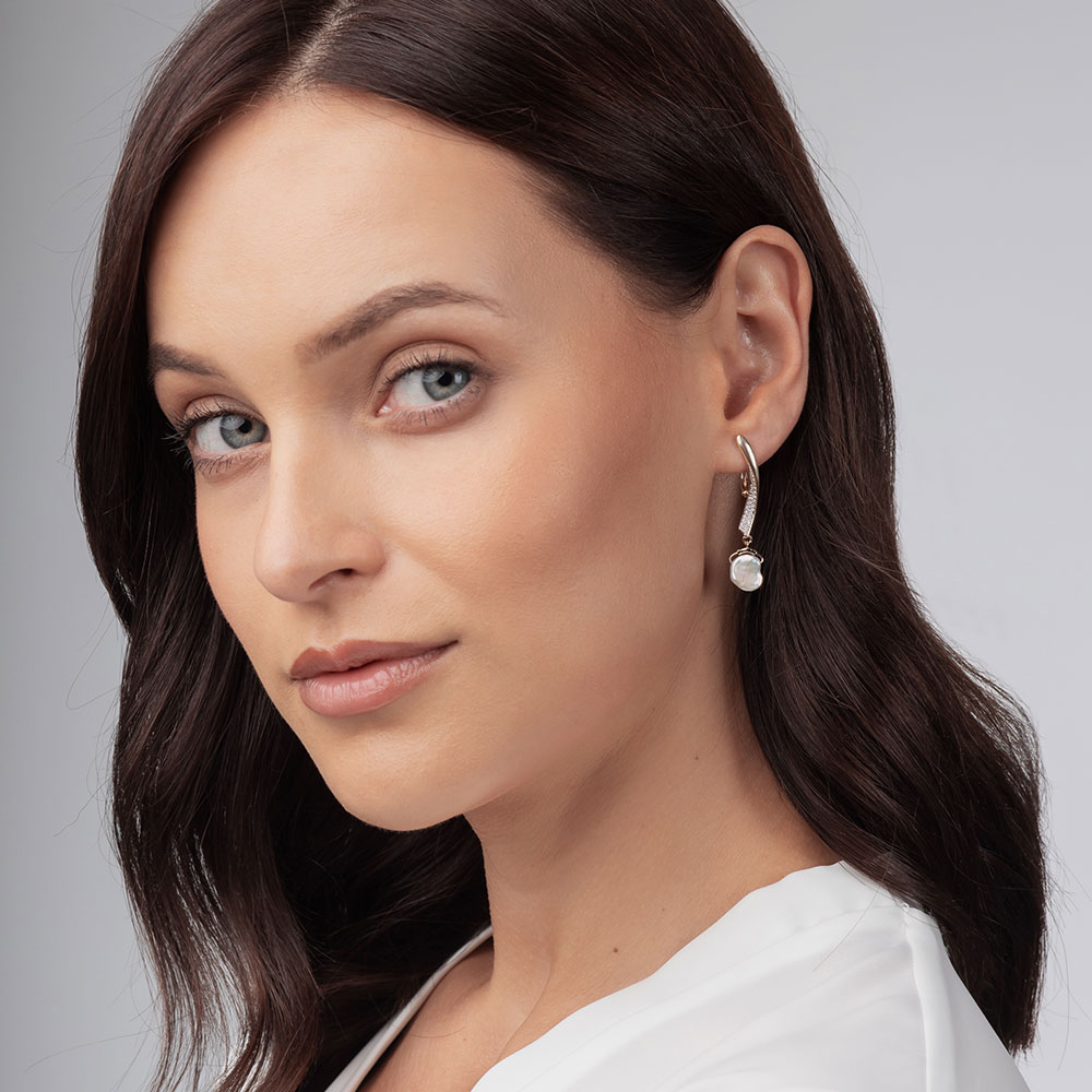 Серьги жёлтое золото 585 пробы со вставками жемчуг культивированный, бриллиант
