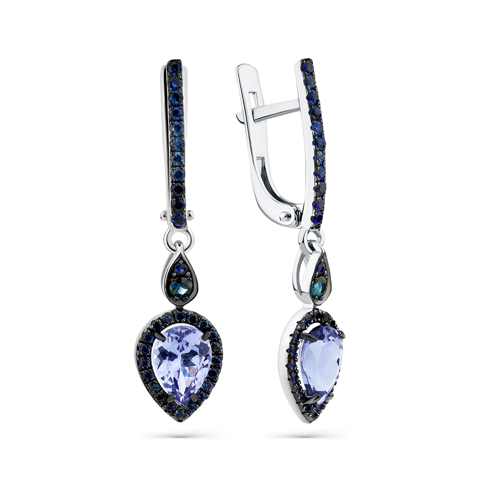 Серьги белое золото 585 пробы со вставками танзанит, сапфир н. арт. 2-208417-00-55