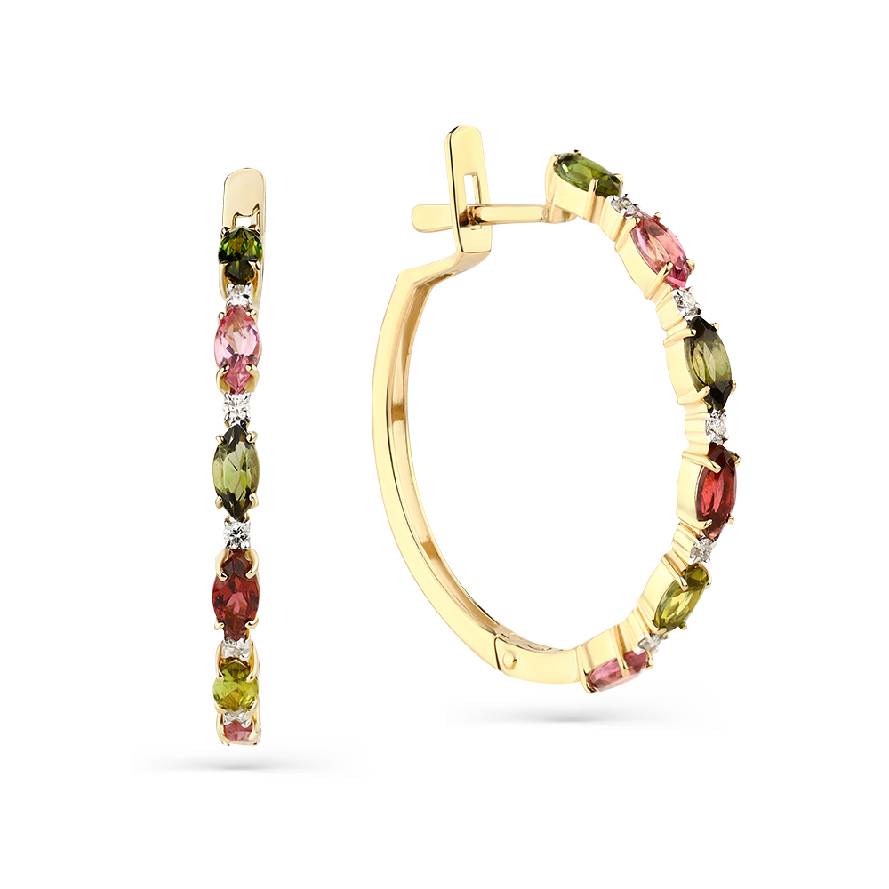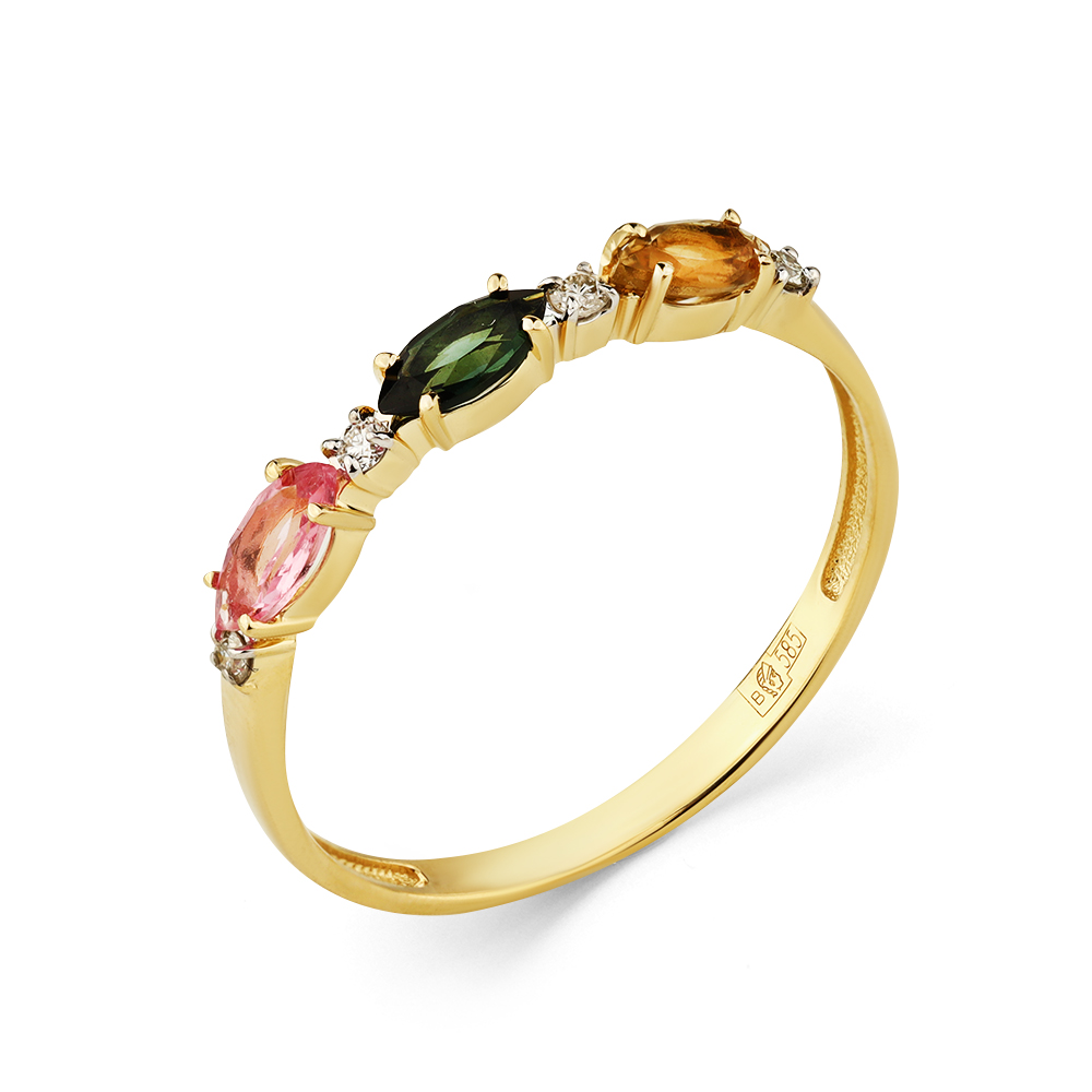 Кольцо жёлтое золото 585 пробы со вставками турмалин мультиколор, бриллиант арт. 1-308401-00-60