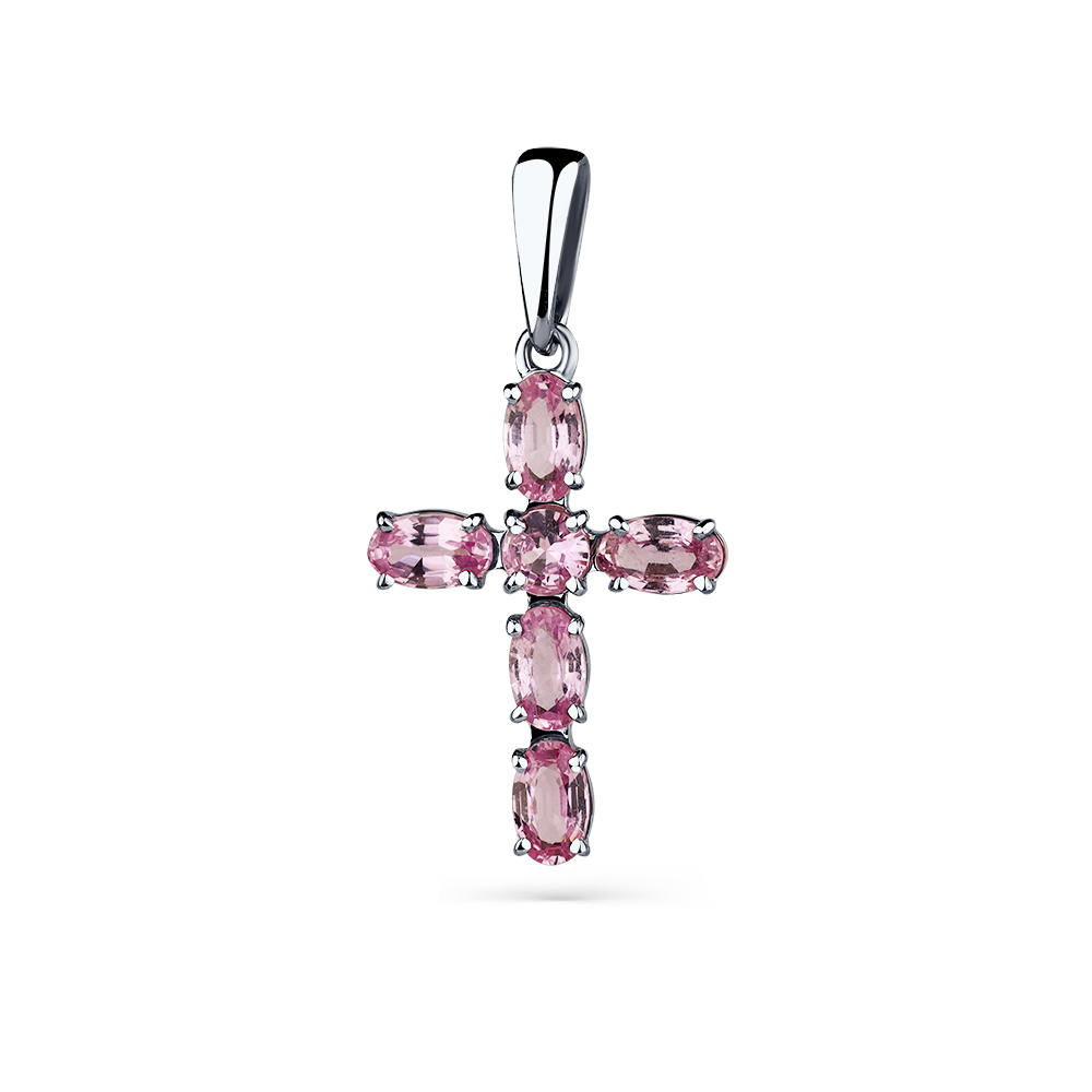 Крест белое золото 585 пробы со вставкой сапфир облагороженный арт. 8-280417-00-74