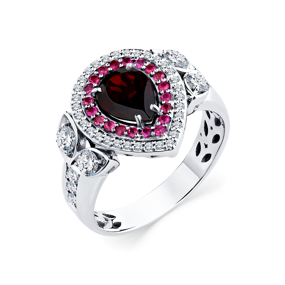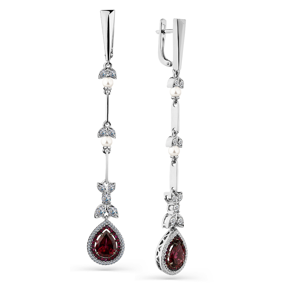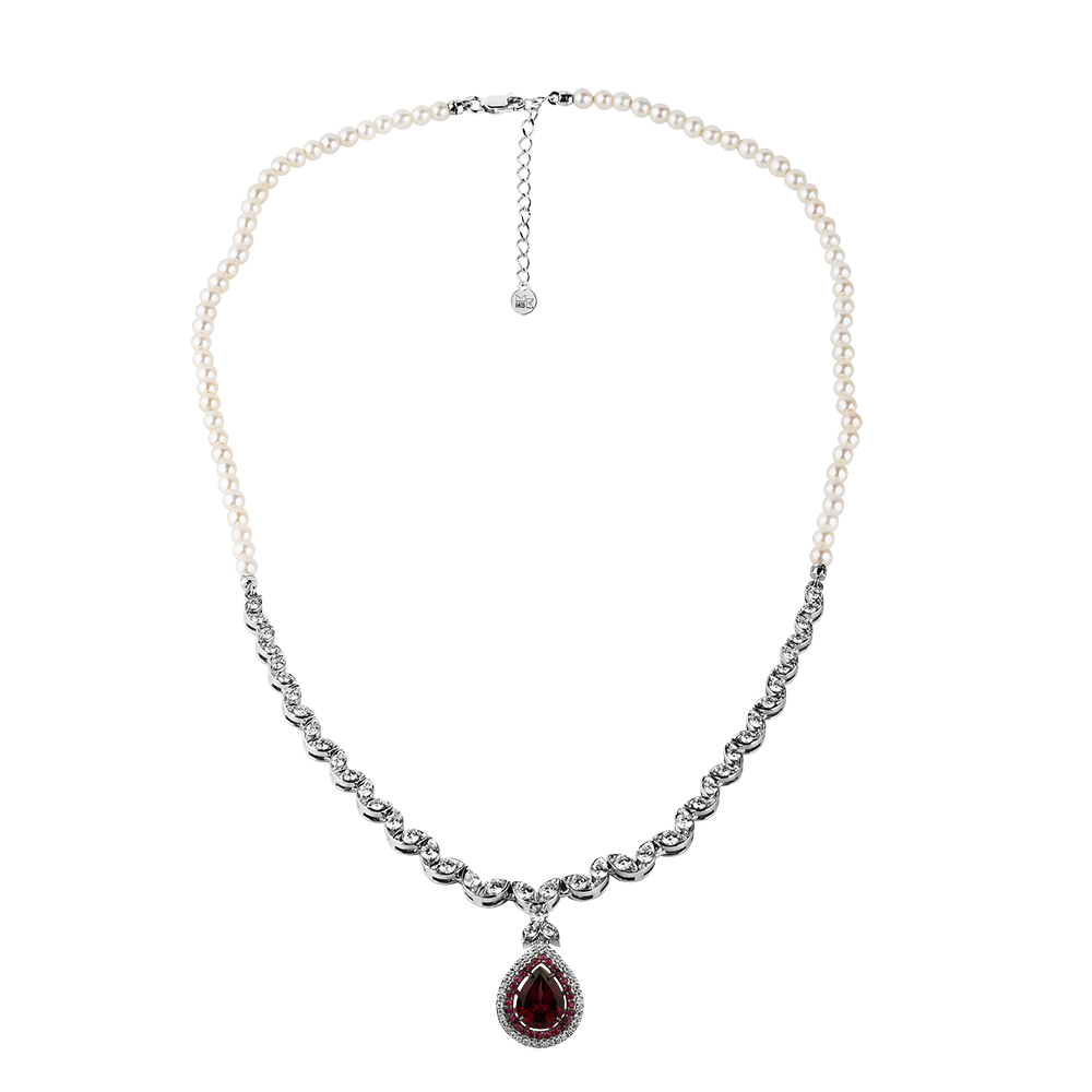 Колье белое золото 585 пробы со вставками жемчуг, гранат, бриллиант, рубин н. арт. 6-260391-00-58